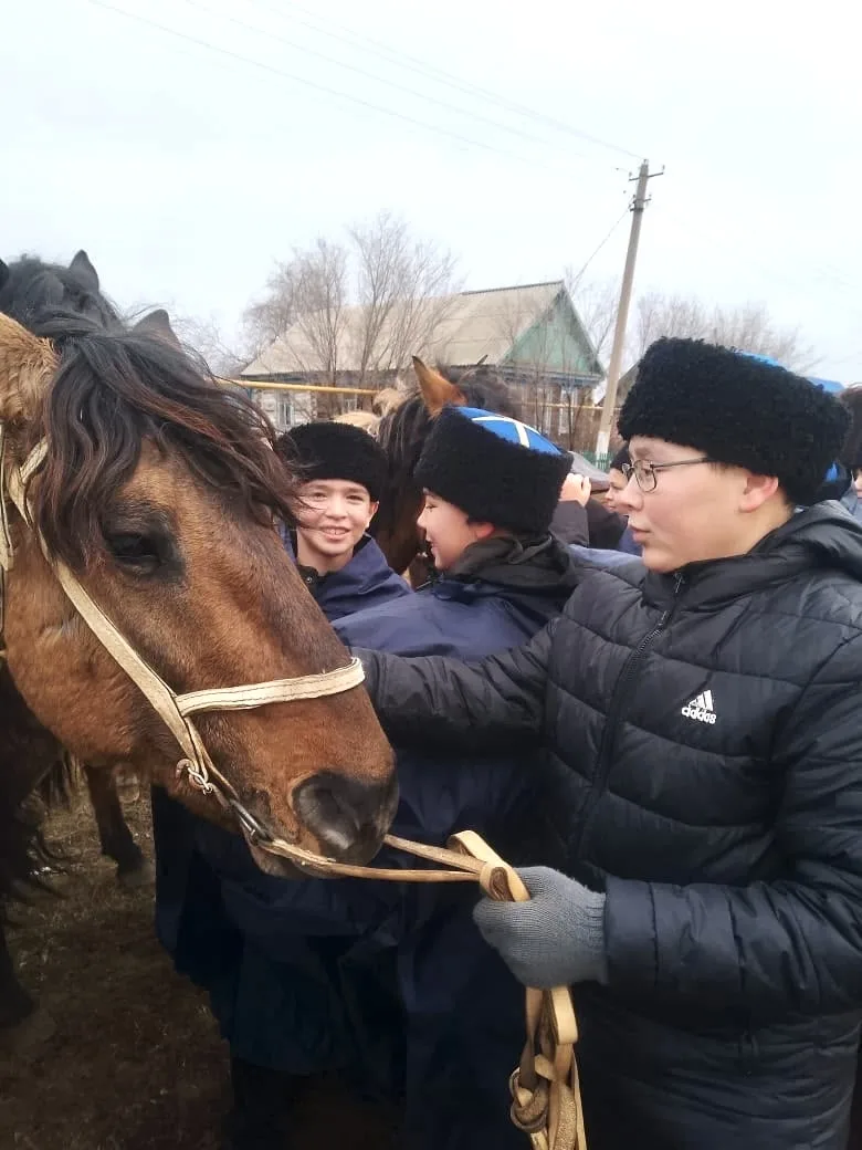 Ребята побывали в гостях у известного коневода Нура Кучербаева. Многократный победитель конных соревнований показал своих красавцев-коней и рассказал ребятам об азах верховой езды.