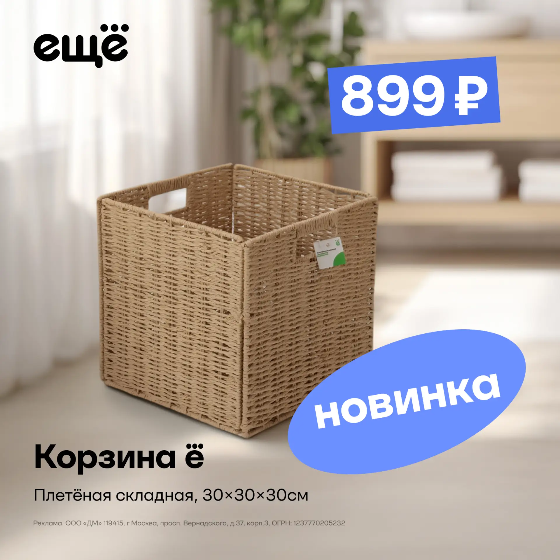 Складная плетёная корзина — это удовольствие для эстета и минималиста. Храните в ней игрушки, бельё, книги или любые мелочи, а если корзина не нужна: просто сложите её — она займёт минимум места!