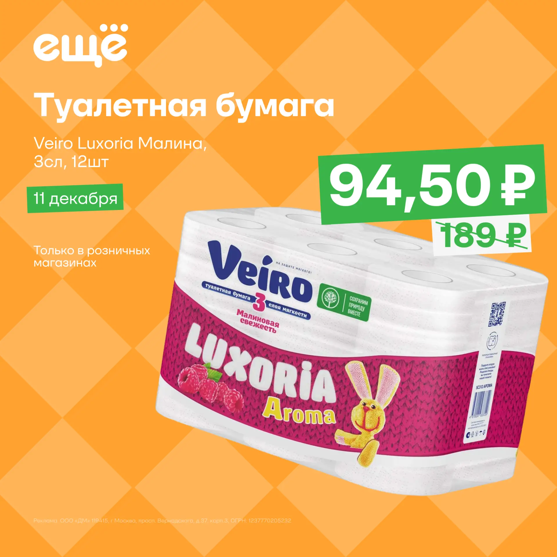Скидка 50% на трёхслойную туалетную бумагу Veiro!