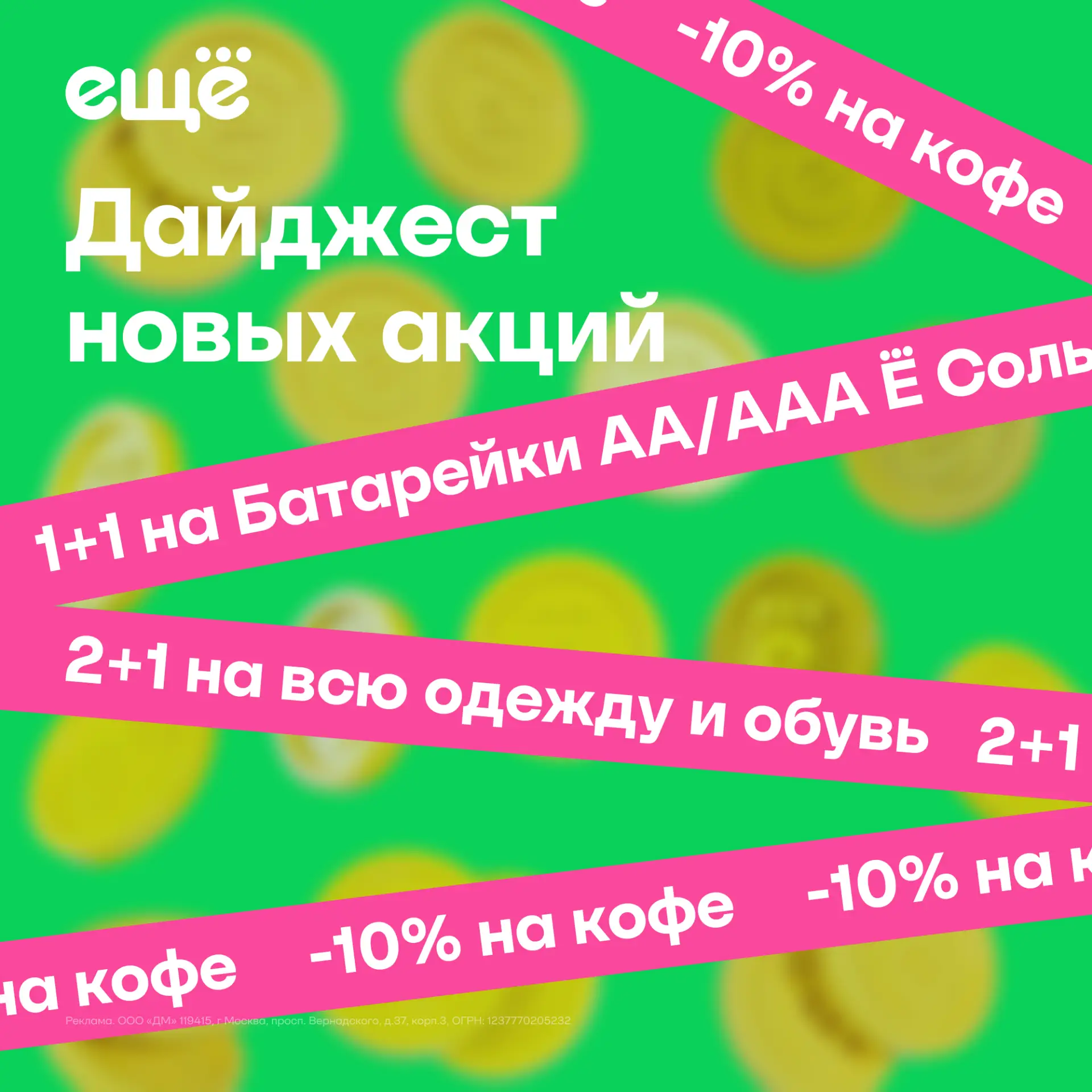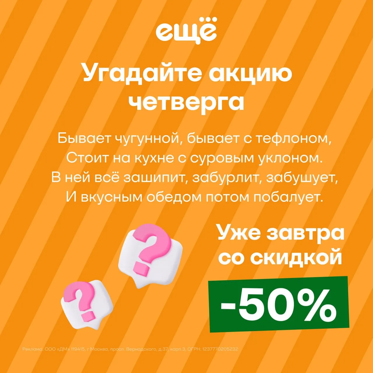 Акция действует во всех магазинах Ещё и на нашем сайте — в корзине скидка применится автоматически.