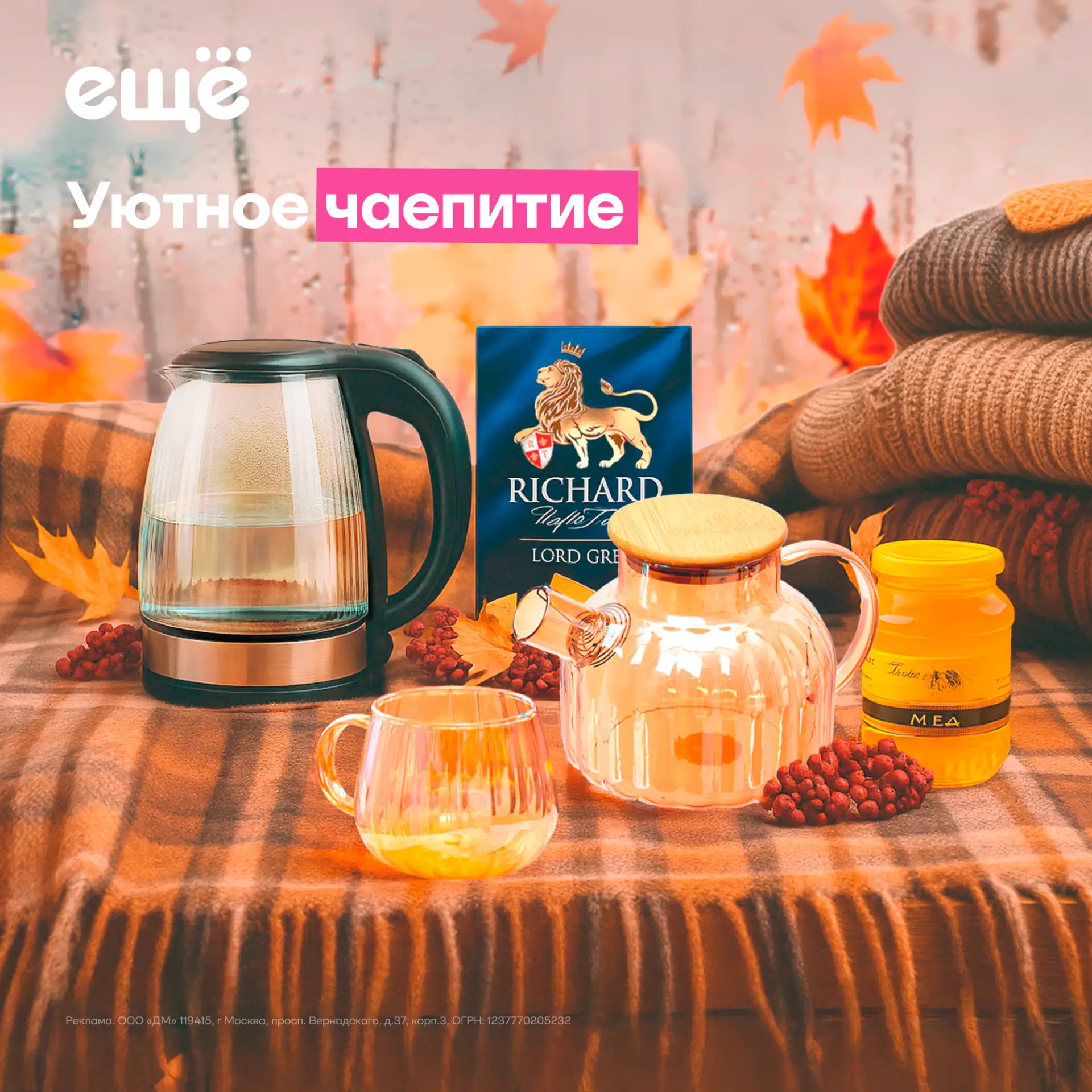 Собрали всё для чаепития в одном месте и по приятных ценам: стильные чашки, удобные чайники, большой выбор чая и, конечно же, разнообразные вкусняшки. Всё это уже ждёт вас в магазинах Ещё и на нашем сайте 👍