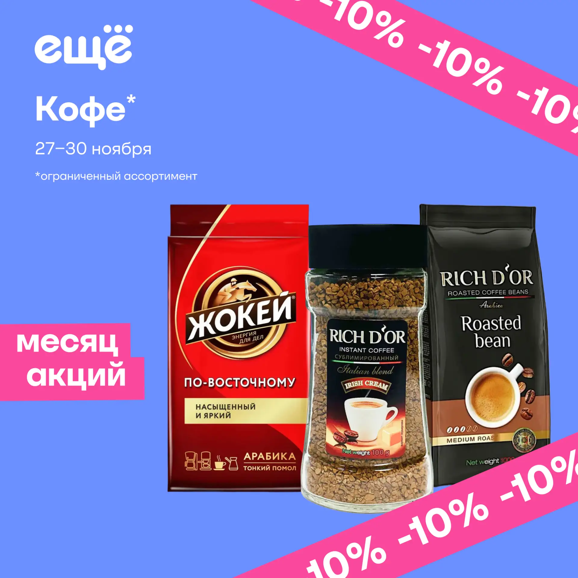 Акции действительны с 13 по 16 ноября в магазинах Ещё и на сайте. Скидка на сайте применится автоматически при добавлении акционного ассортимента в корзину.