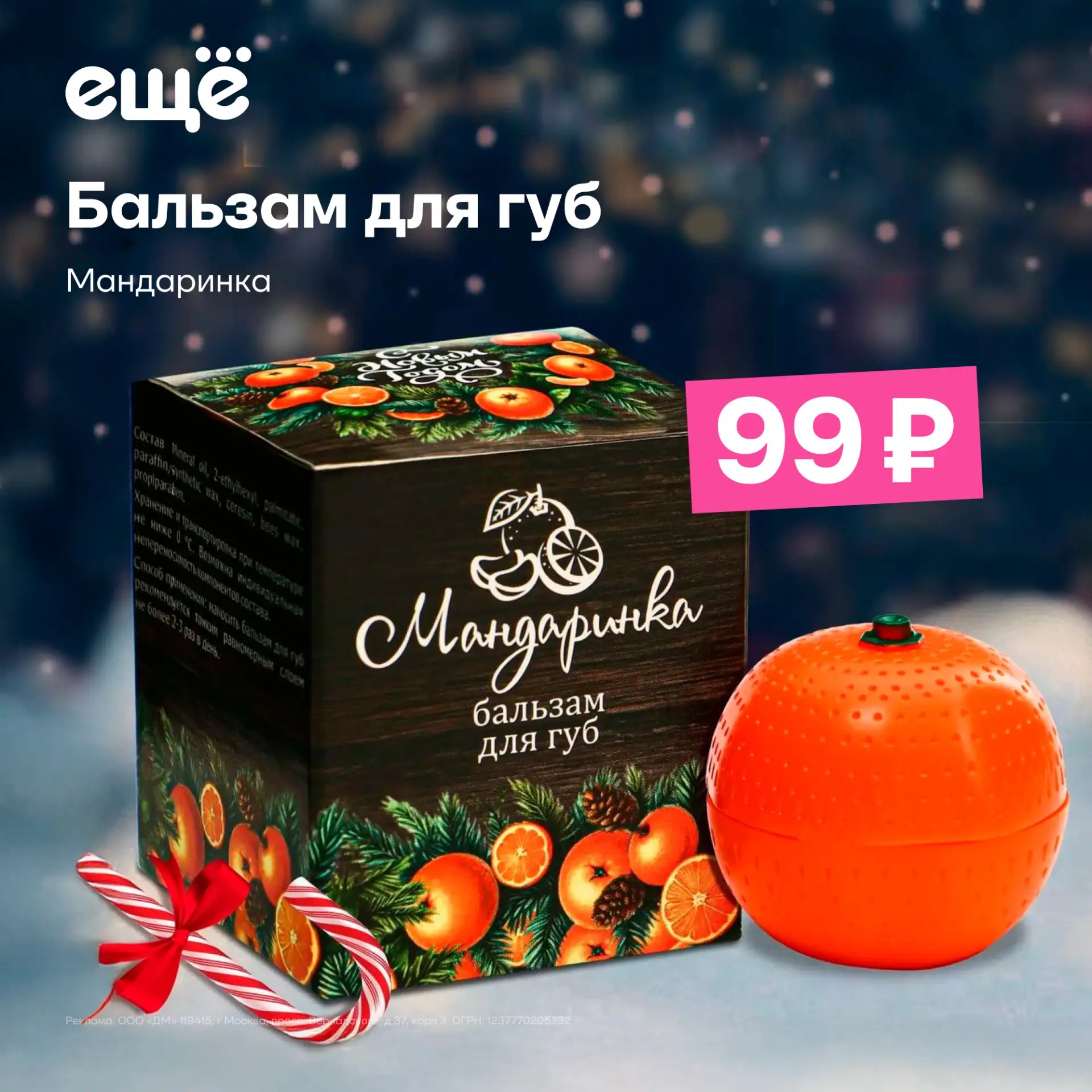 Вы только посмотрите на этот яркий бальзам для губ в виде атмосферного новогоднего фрукта. Приятный мандариновый аромат и питание ваших губ без липкости!