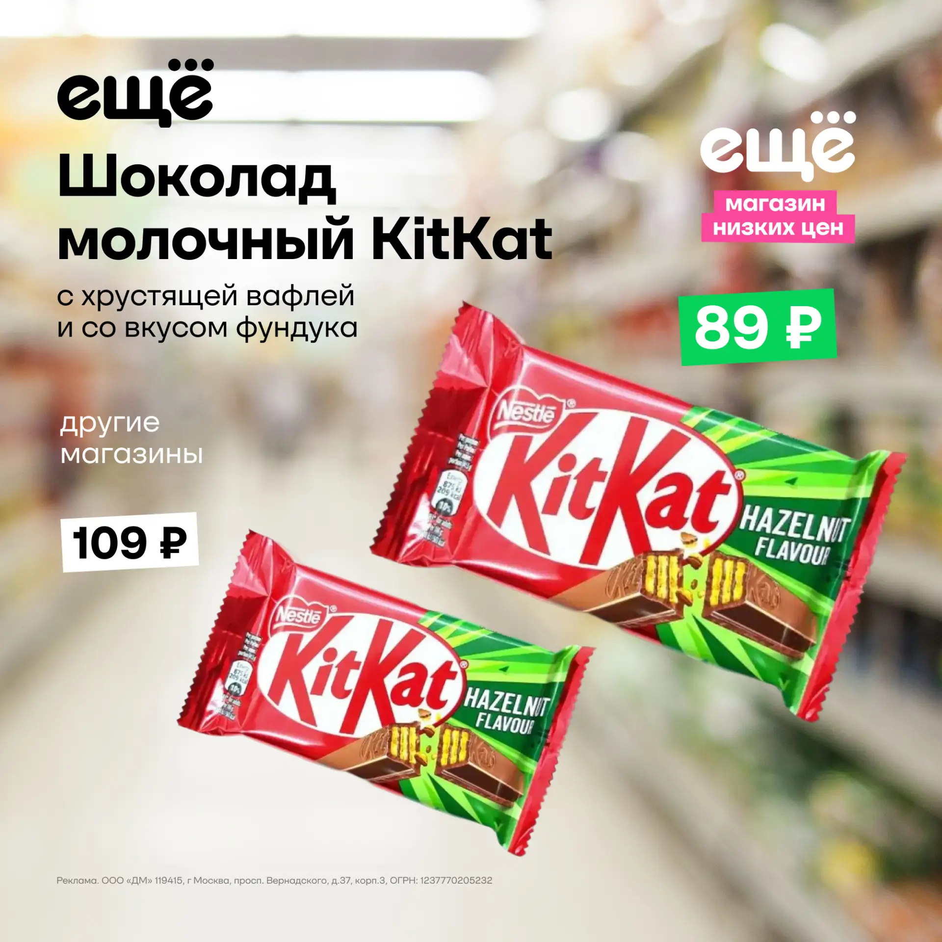 Совершайте покупки без вреда для бюджета: шоколадный батончик KitKat с хрустящей вафлей и ярким вкусом фундука по выгодной цене!