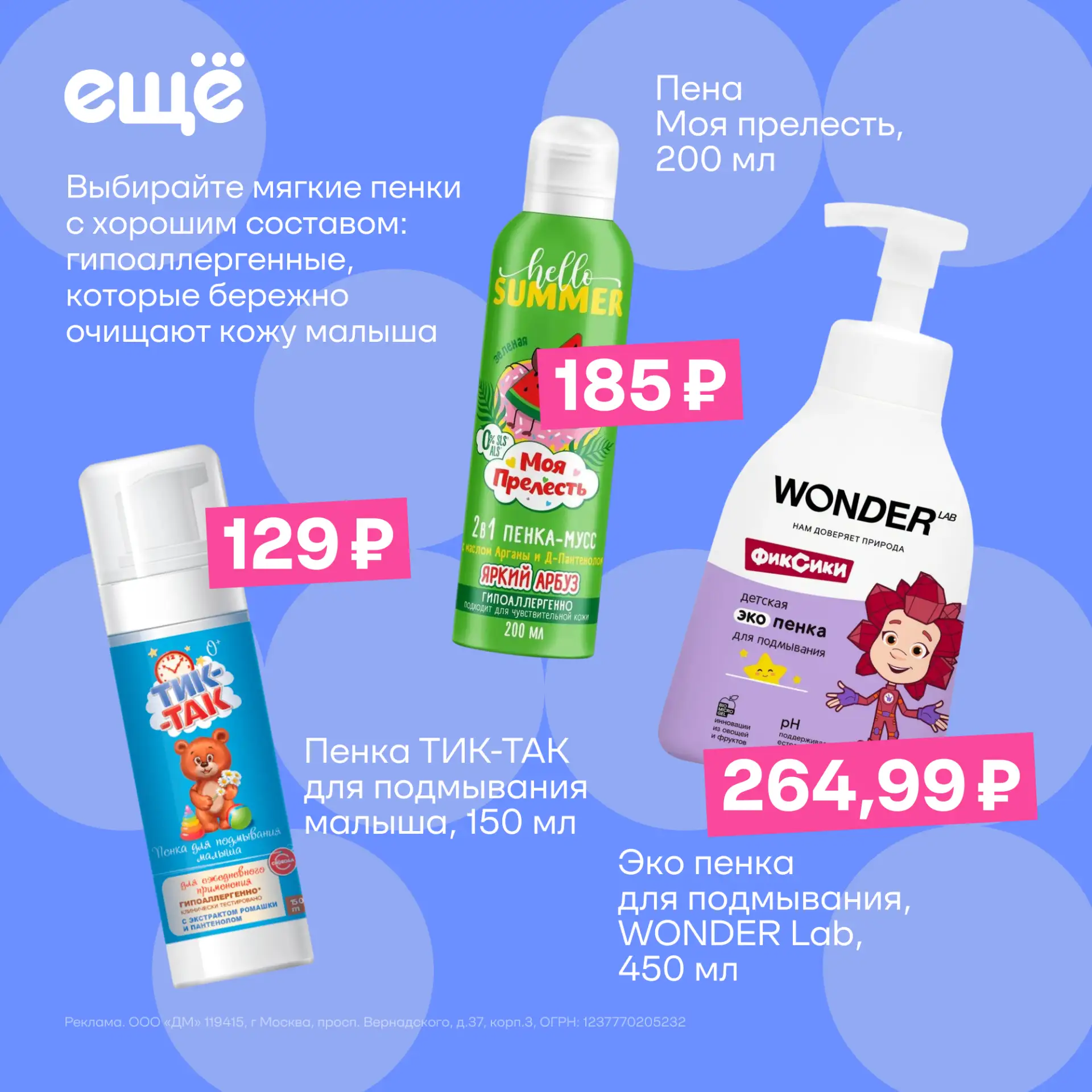 Листайте карточки и узнайте, как сделать уход за малышом лёгким и приятным, и приходите в Ещё за товарами по выгодной цене!