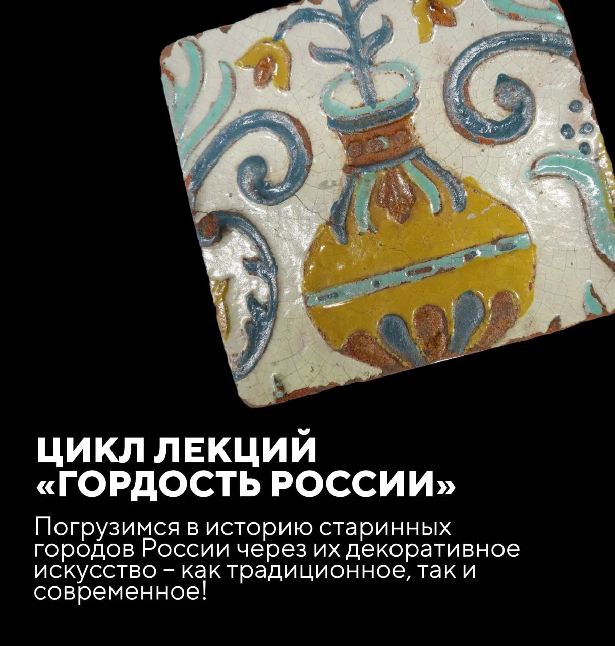 Приглашаем вас в увлекательное путешествие по истории старинных городов России! Наш цикл лекций «Гордость России» расскажет о знаменитых центрах народных промыслов, которыми эти города славились в XVI–XIX веках и которые продолжают свою жизнь и в наши дни. Мы сделаем акцент на их уникальной архитектуре, а также на талантливых ремесленниках, работавших в различных областях художественного творчества и создававших прекрасные изделия.