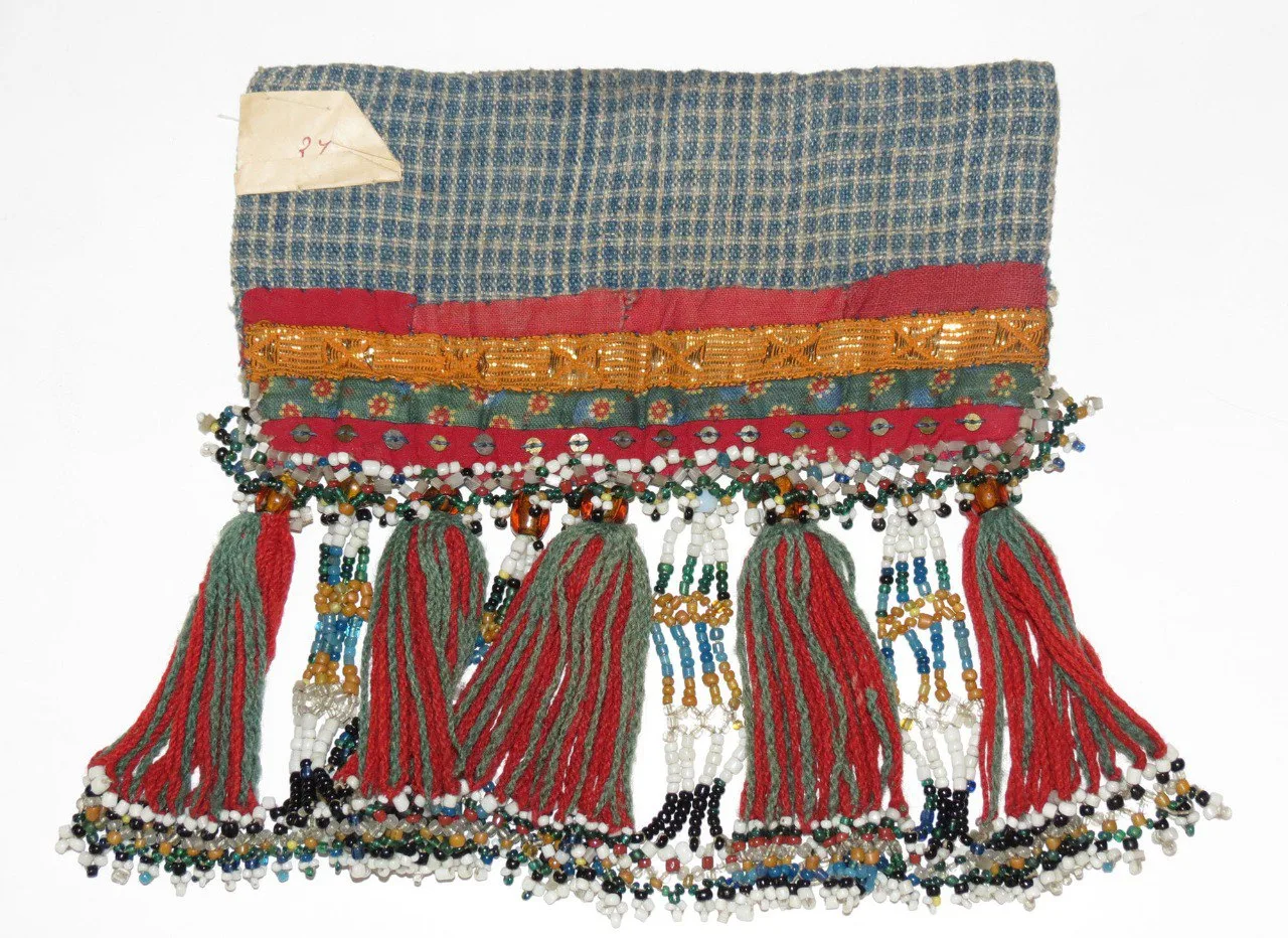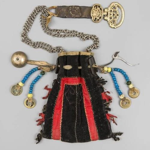 Данза-хабы – чехол женский для ношения на поясе трубки; сделан в виде мешочка из черного плиса на ровдужной подкладке (фотография 1 и 4).