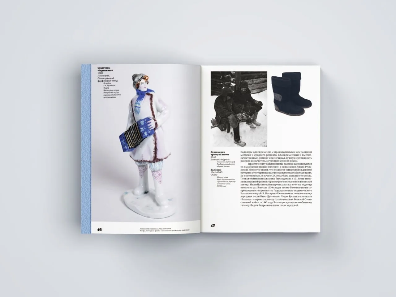 В книге «Валенки. История и традиция валяльного промысла» статья Татьяны Зиминой подробно освещает историю производства и бытования этой обуви в России с конца XVIII века до наших дней. Вторая книга — «Путеводитель по Российскому этнографическому музею». Автор — доктор исторических наук Маргарита Альбедиль. Это не просто гид, а глубокое погружение в традиционную культуру.