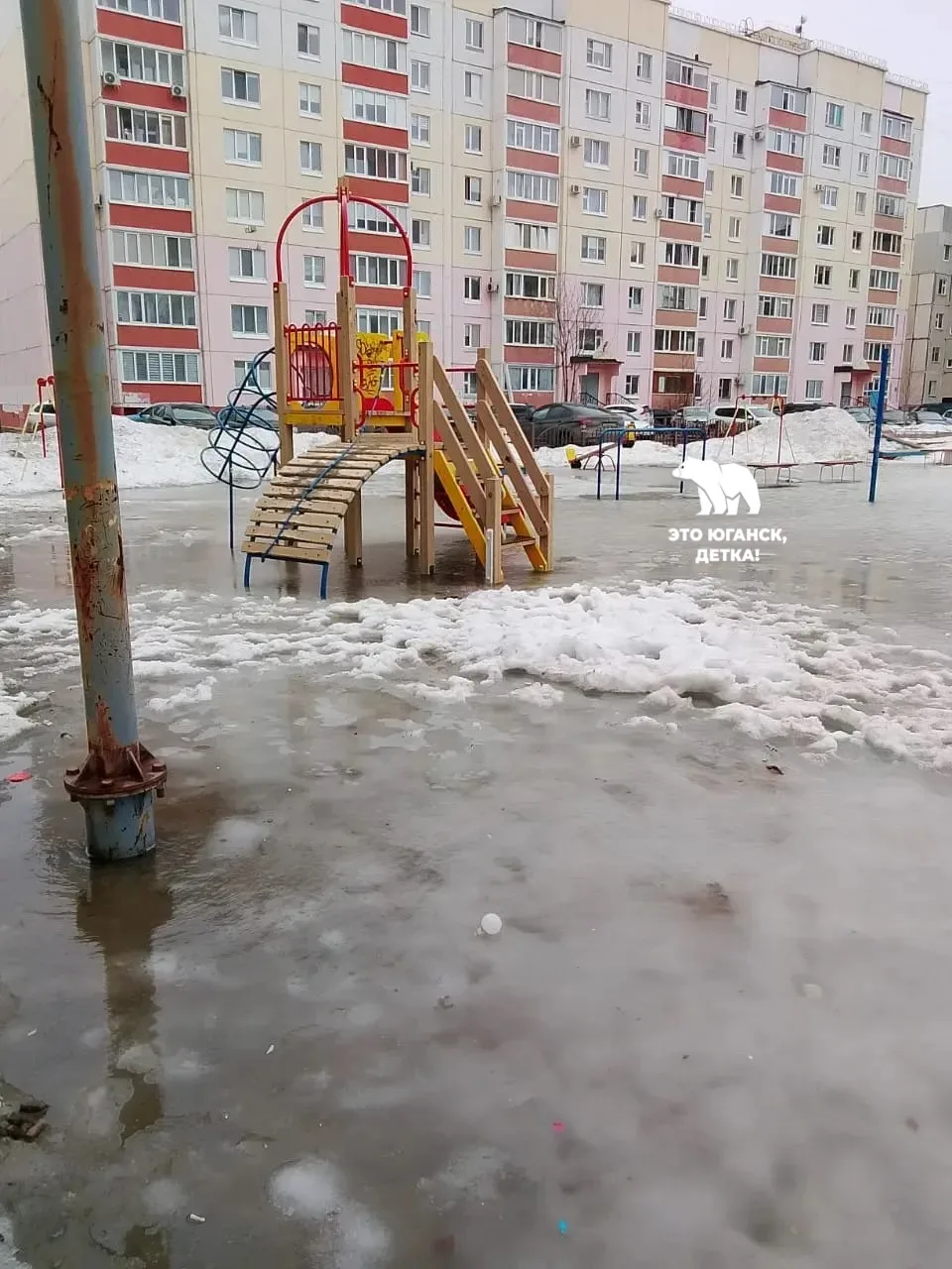 Эта беда постоянно в шестом микрорайоне, возле дома номер 4. С весны и до самой зимы, за редким исключением, эта площадка постоянно затоплена. И местами глубина я вам скажу опасная. Никто не отсыпает, водоотведение не делает. А как же дети? А дети надев сапоги лезут сюда не осознавая опасности. Пора бы определиться со всеми детскими площадками города и привести их в порядок. Пора делать ливнёвки, отсыпать, озеленять и монтировать искусственное освещение. Вопрос. Когда уже наконец начнут это всё делать? Почему депутаты до сих пор не подняли этот вопрос, не рассмотрели и не приняли меры реагирования? Некогда видимо, скоро выборы, не до мелочей.