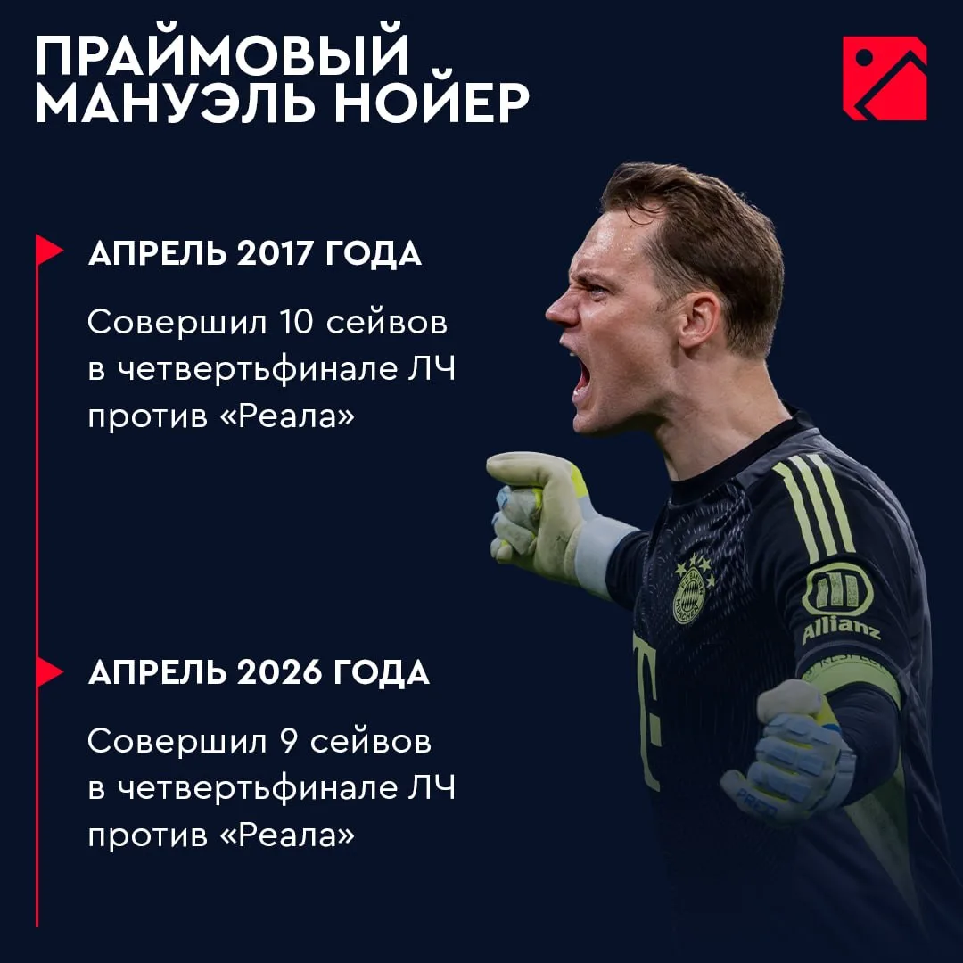 Вчера Нойер показал лучший личный результат по сейвам в плей-офф ЛЧ 👑