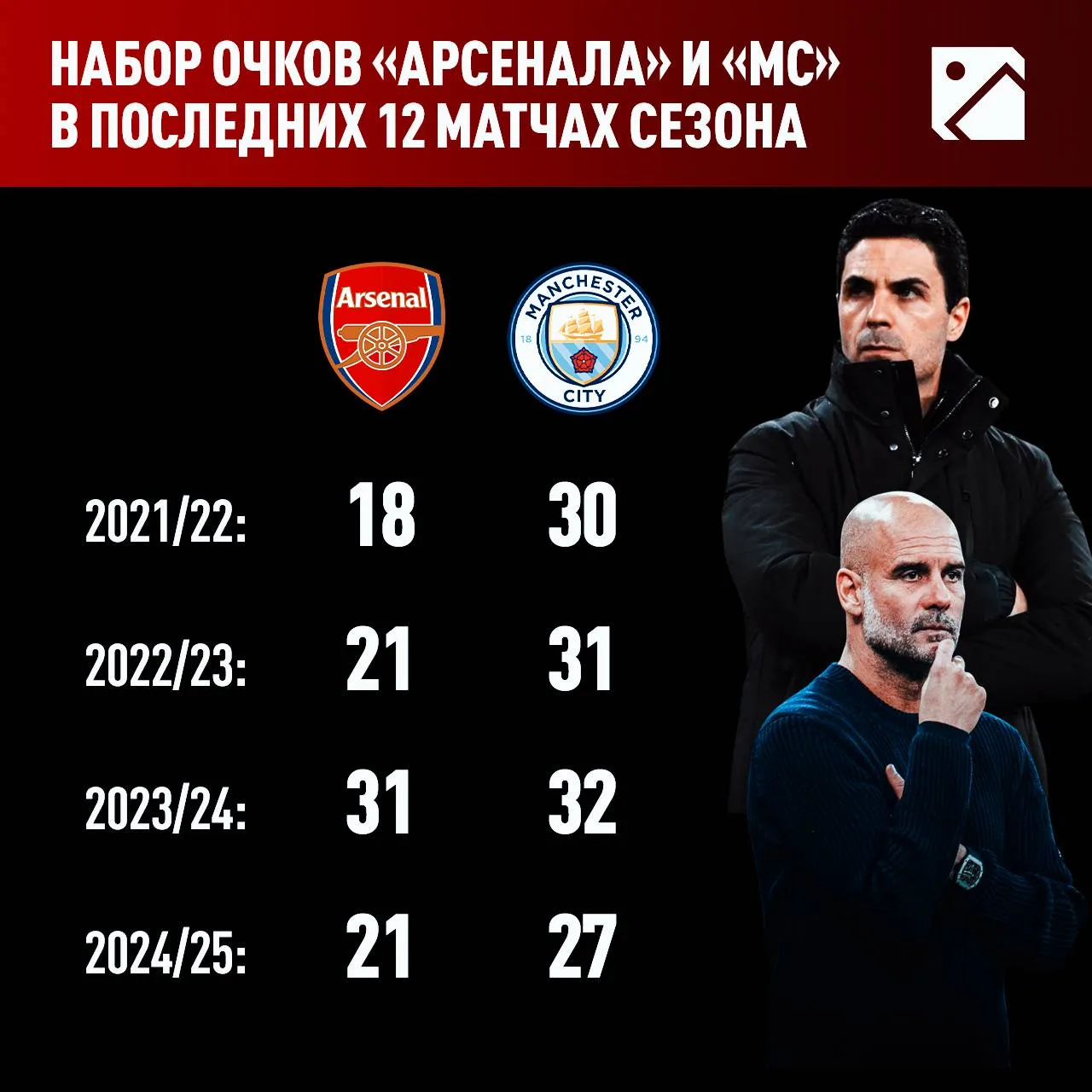 Сейчас команда Артеты опережает «МС» на 5 очков, но у банды Пепа матч в запасе 🫠