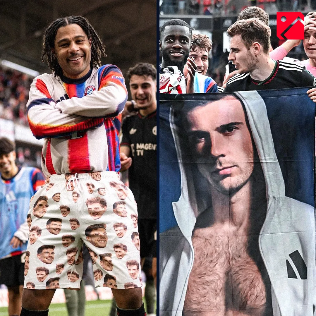 После камбэка в игре с «Фрайбургом» Гнабри надел шорты с фотками Леона, а Станишич развернул плакат с торсом Горетцки 😁