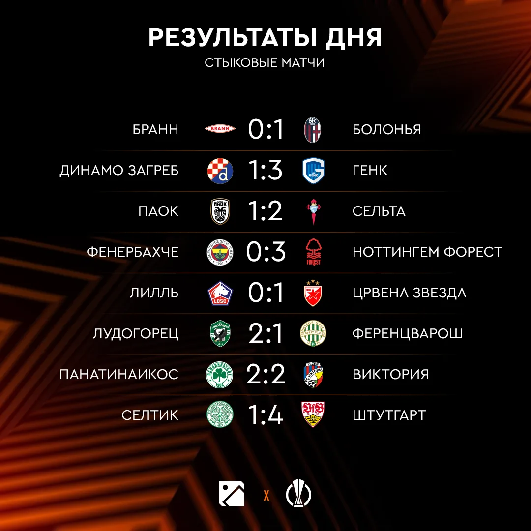 Результаты первых стыковых матчей ЛЕ. Ответные — через неделю 🤝