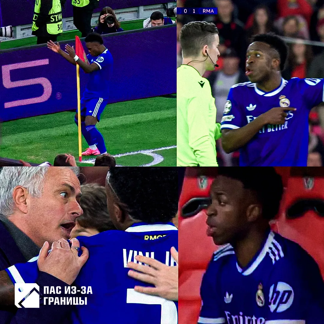 Из обидного: Винисиуса оскорбили, Моуринью удалили и его не будет на бровке во втором матче 😭