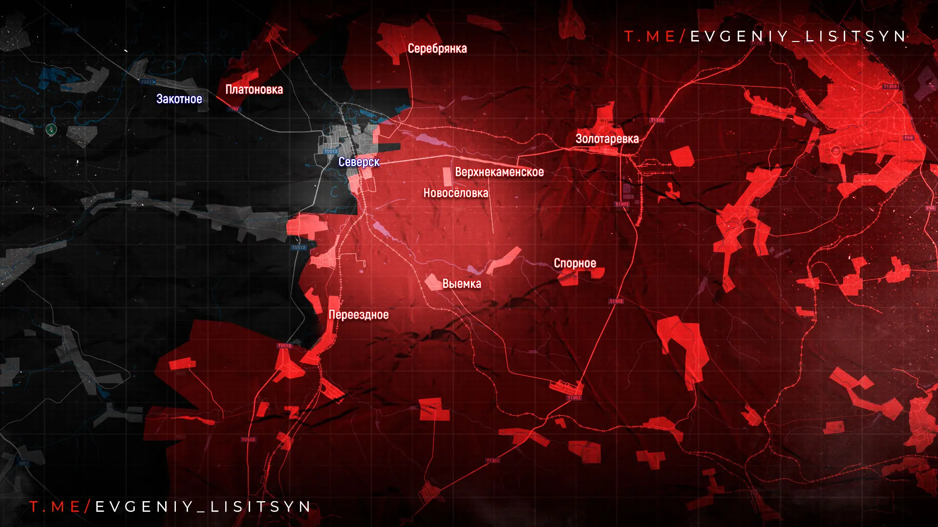 🗣Северское направление. Под контролем восточная часть Северска; бои на юго-западе. Штурмуются окраины Закотного, наши давят укрепрайон от Фёдоровки до Сакко и Ванцетти.