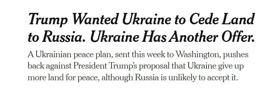 ⏺Россия не примет украинскую версию мирного плана, сообщает The New York Times.