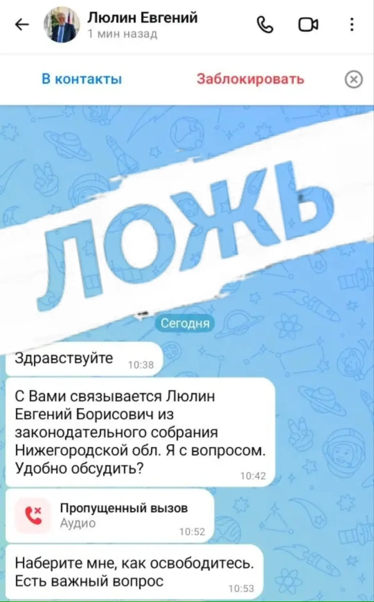 Аферисты как вирус. Их гонишь в Телеге, они лезут в МАХ. Сегодня мне написал «Люлин Евгений». Просил перезвонить как освобожусь. С этого же аккаунта получили сообщения еще несколько коллег аппарата ЗакСобрания. К счастью, никто не повёлся на уловку. Мошенник остался с носом.