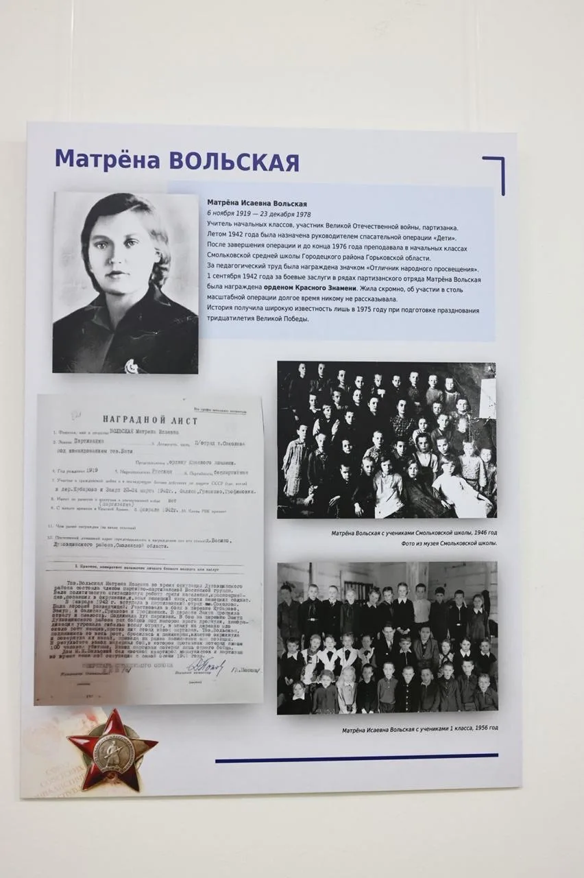 Но мы не забудем! Подвиг молодых партизанок запечатлен в книгах и документальных фильмах наших журналистов. Вскоре, презентованная в парламенте выставка, отправится по нижегородским школам. Наша парламентская молодежь вышла с инициативой учредить медаль имени Матрены Вольской, чтобы вручать ее за вклад в патриотическое воспитание и защиту прав детей. Уверен, что старшие коллеги законодатели их поддержат. Потому что именно на таких примерах молодежь должна учиться тому что значит быть преданным своей Родине.