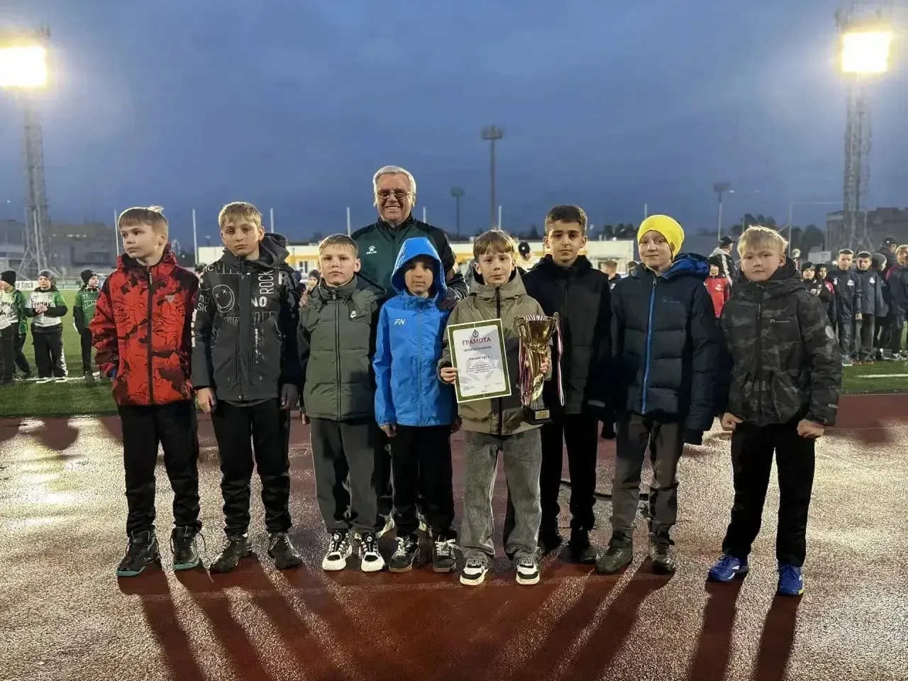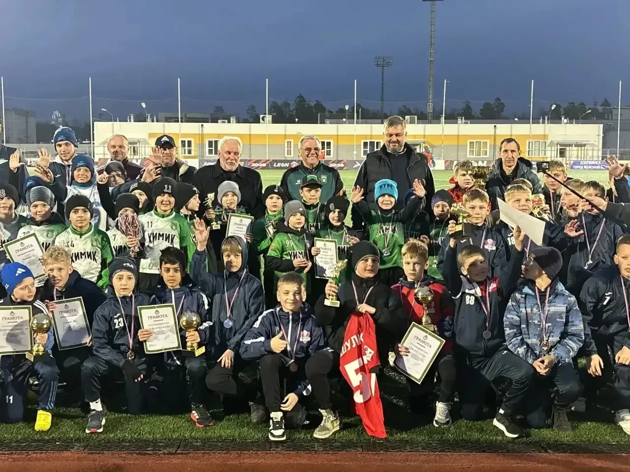 В перерыве на стадионе наградили юных футболистов – призеров первенства Дзержинска по футзалу. Для ребят это важный шаг, а для города вклад в будущее футбола.