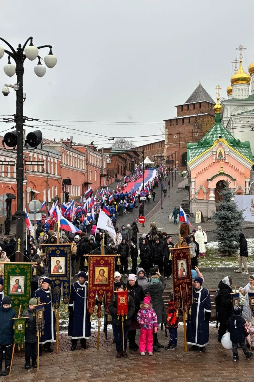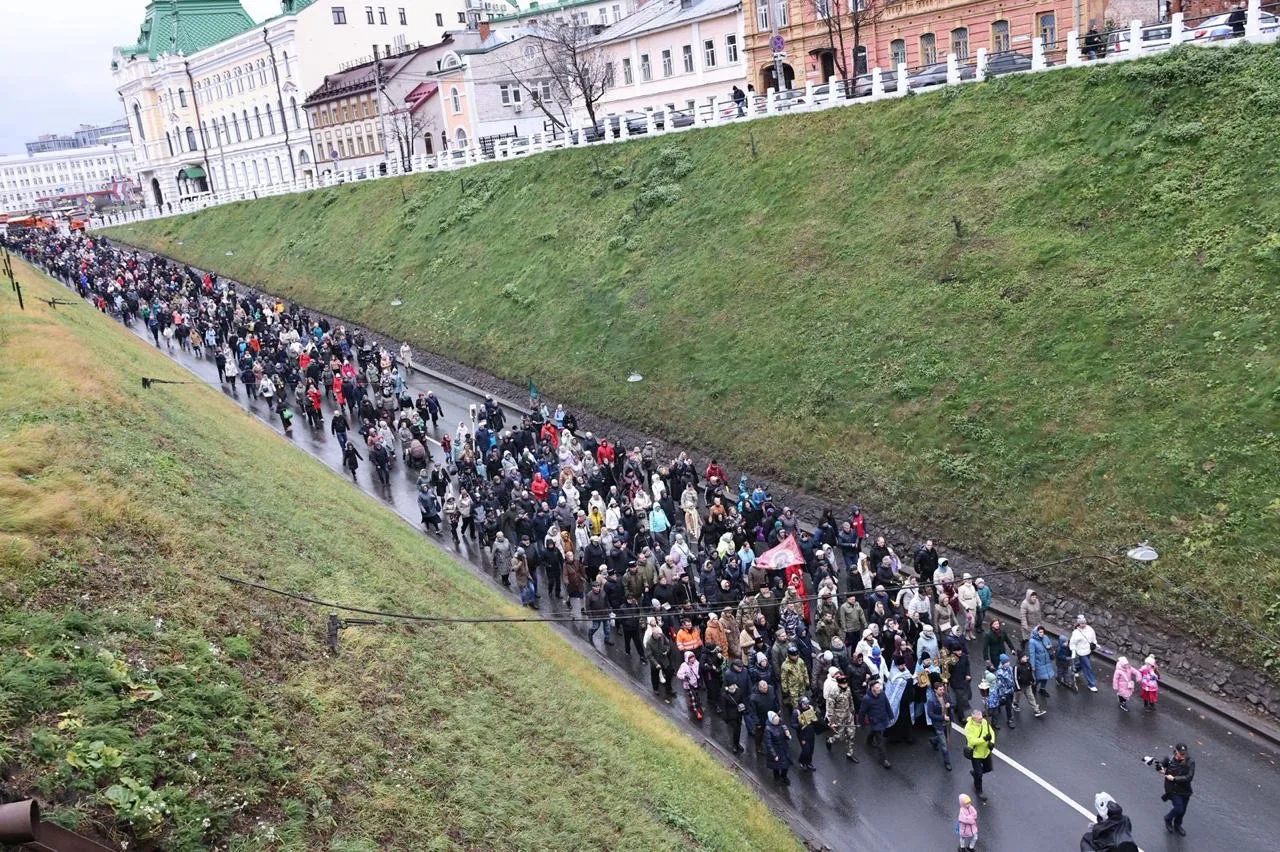 Ни дождь, ни ветер не помешали празднованию Дня народного единства. Согретые теплом своих сердец и любовью к Родине, тысячи людей, семьями, с маленькими детьми собрались в центре Нижнего, чтобы почтить память героев ополчения 1612 года. Прошли крестным ходом до площади Единства и помолились за добровольцев, отправляющихся сегодня на специальную военную операцию.