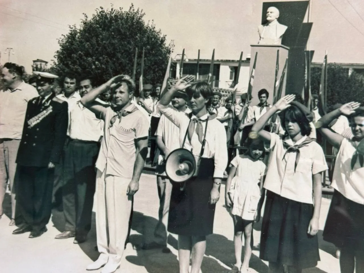 На первом снимке Юрий Гагарин принимает парад пионеров в Евпатории 22 августа 1965 г.