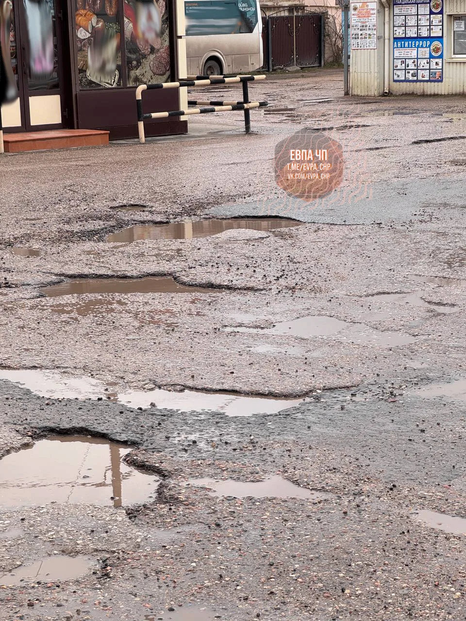 Г. Евпатория, ул. Товарная, Межрайбаза, (спасибо большое) администрации города и базы. За то, что ямы по колено и при заезде на базу я оторвал бампер, так как объехать было нереально! Огромное спасибо!