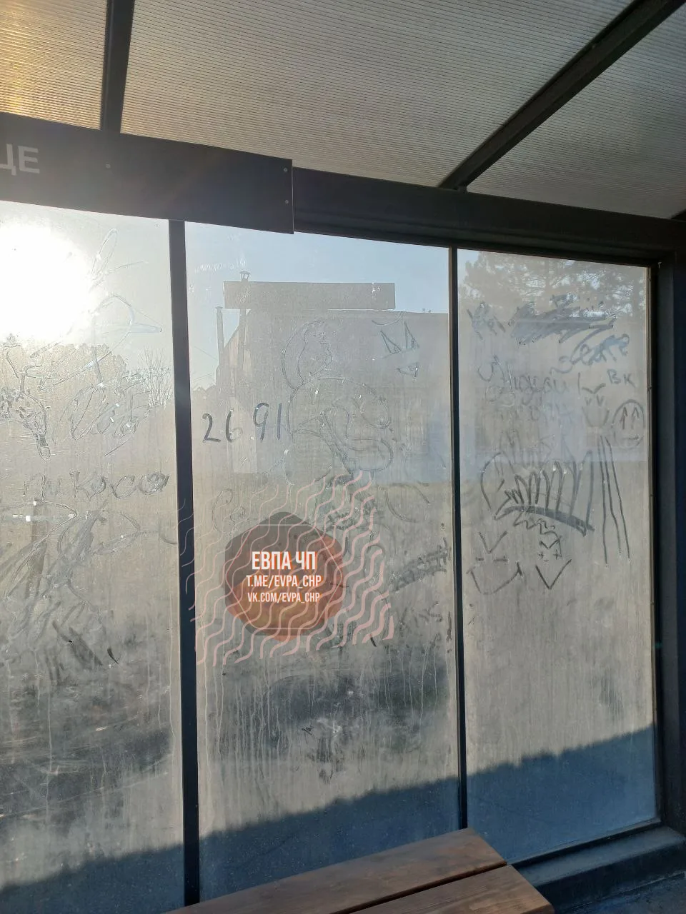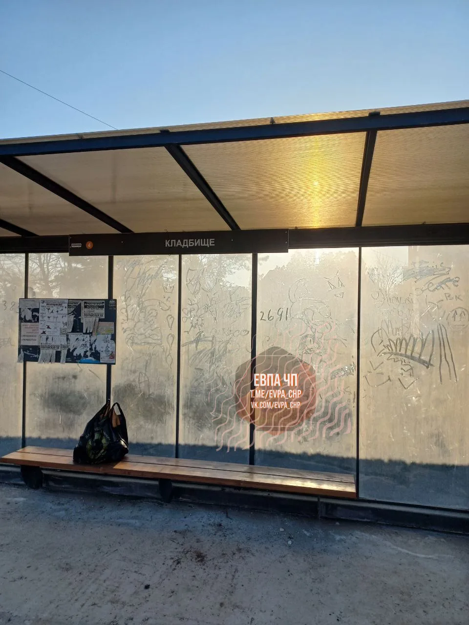 Недавно был пост о уборке стёкол остановок. Об остановке у центрального входа старого кладбища на Красноярском шоссе такого не скажешь.