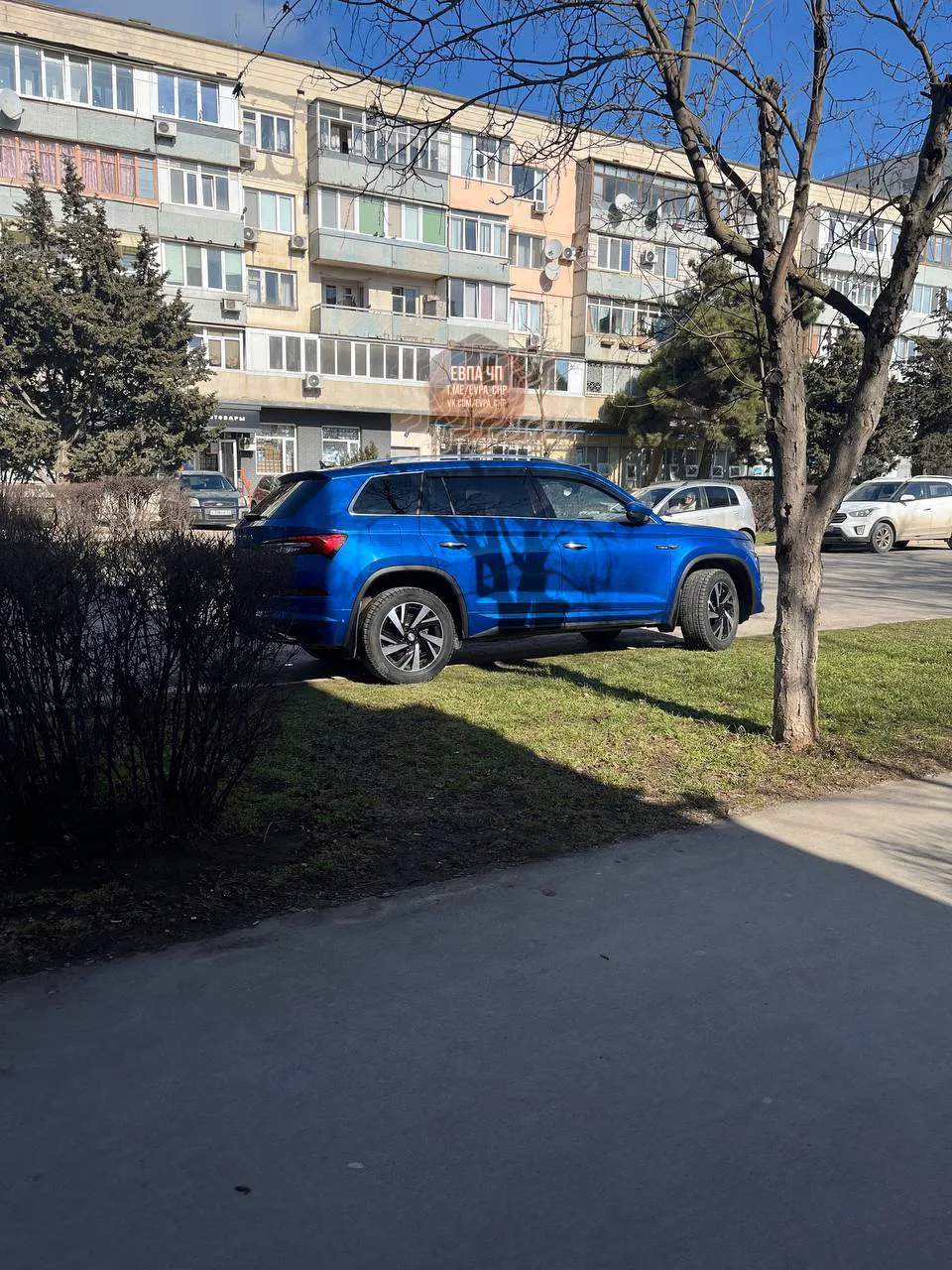 И так от газона мало что осталось, так еще и паркуются не по правилам.