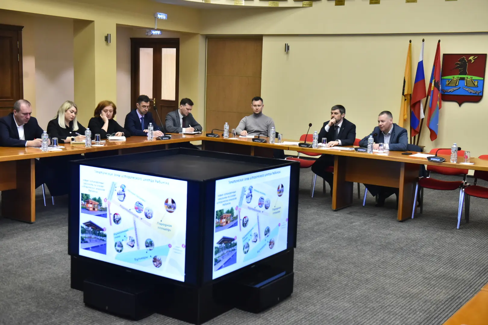 Продолжили тему создания пешеходного центра на совещании в администрации Рыбинска. Важно синхронизировать эти работы с ремонтом фасадов зданий и установкой архитектурной подсветки в других частях центра Рыбинска.