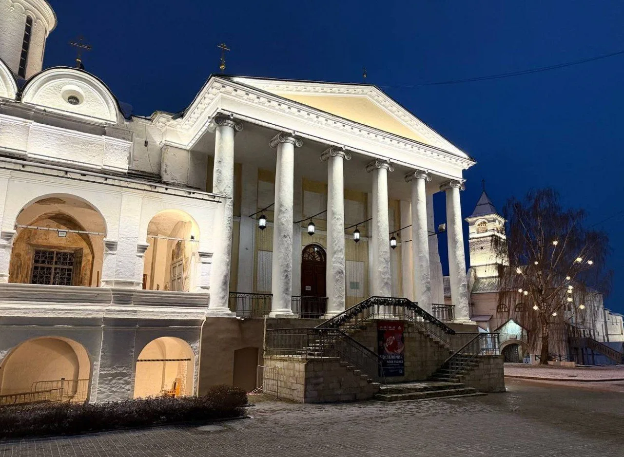 Художественное освещение подчеркивает архитектурную взаимосвязь объектов, их пропорции и детали. В вечернее время ансамбль раскрывается по-новому – более выразительно, цельно и гармонично.