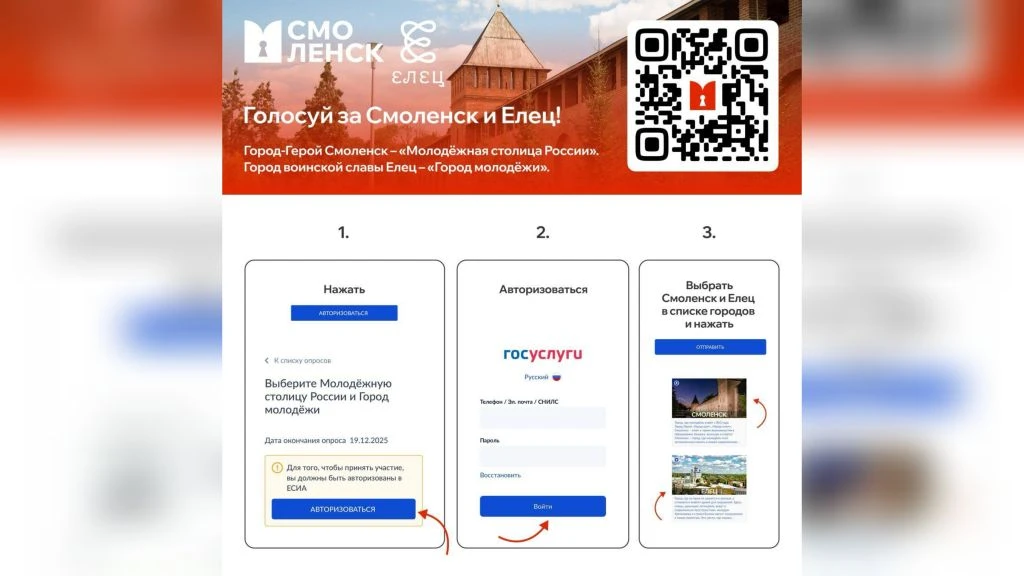 Голосование проходит до 19 декабря на портале госуслуг по ссылке. Чтобы принять в нем участие, нужно войти под своей учетной записью, выбрать номинацию «Молодежная столица» или «Город молодежи» и открыть опрос.