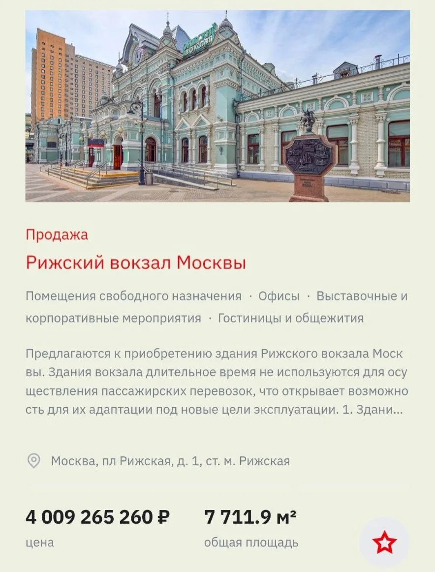 РЖД выставили на продажу Рижский вокзал за 4 млрд рубле...
