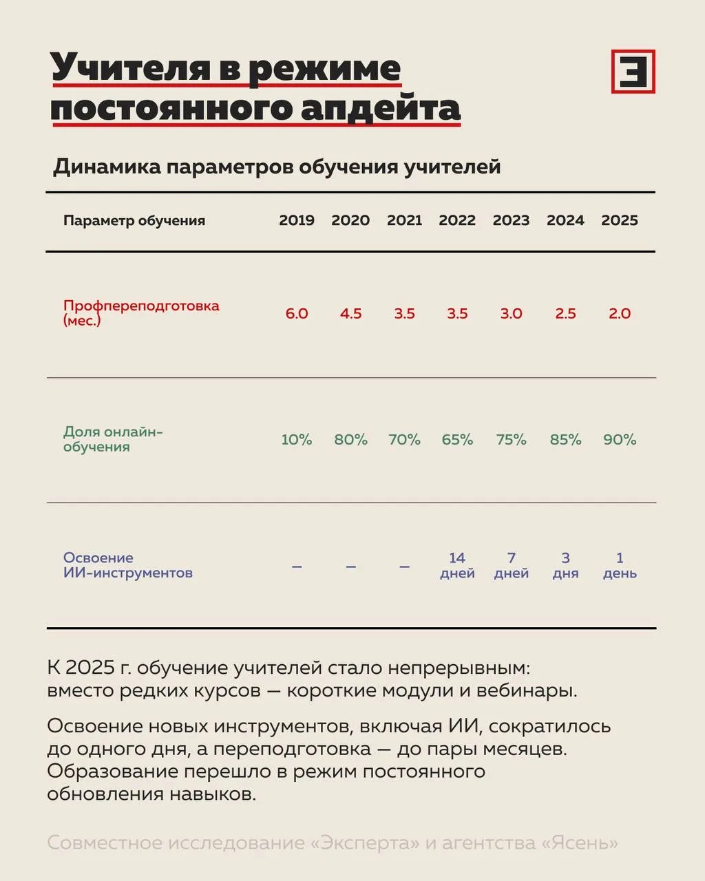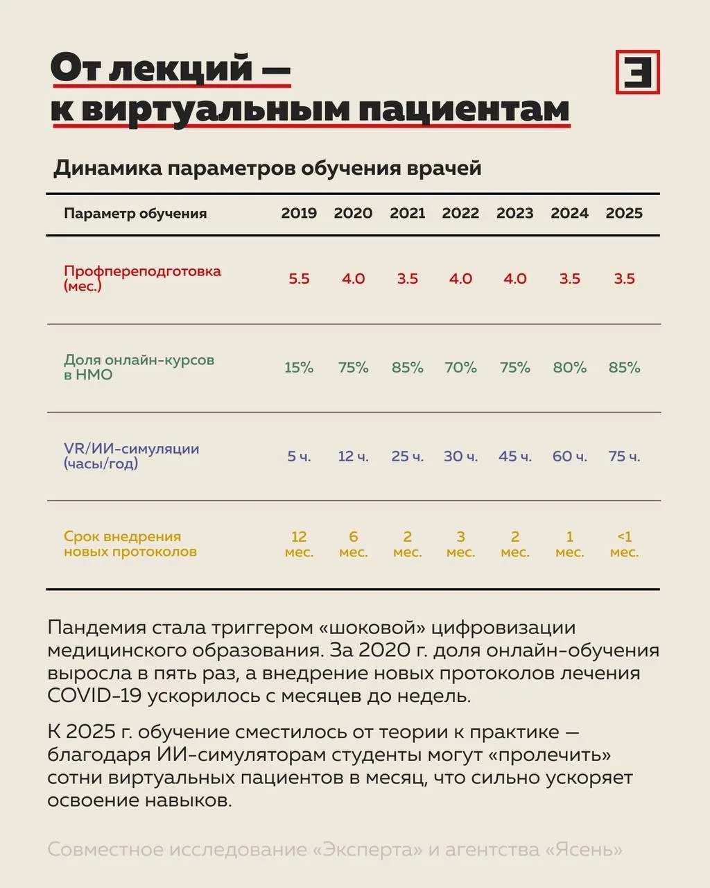 Переподготовка врачей ускорилась в 3–4 раза, подготовка разработчиков сократилась до 4 месяцев, а освоение новых инструментов у учителей — до одного дня.