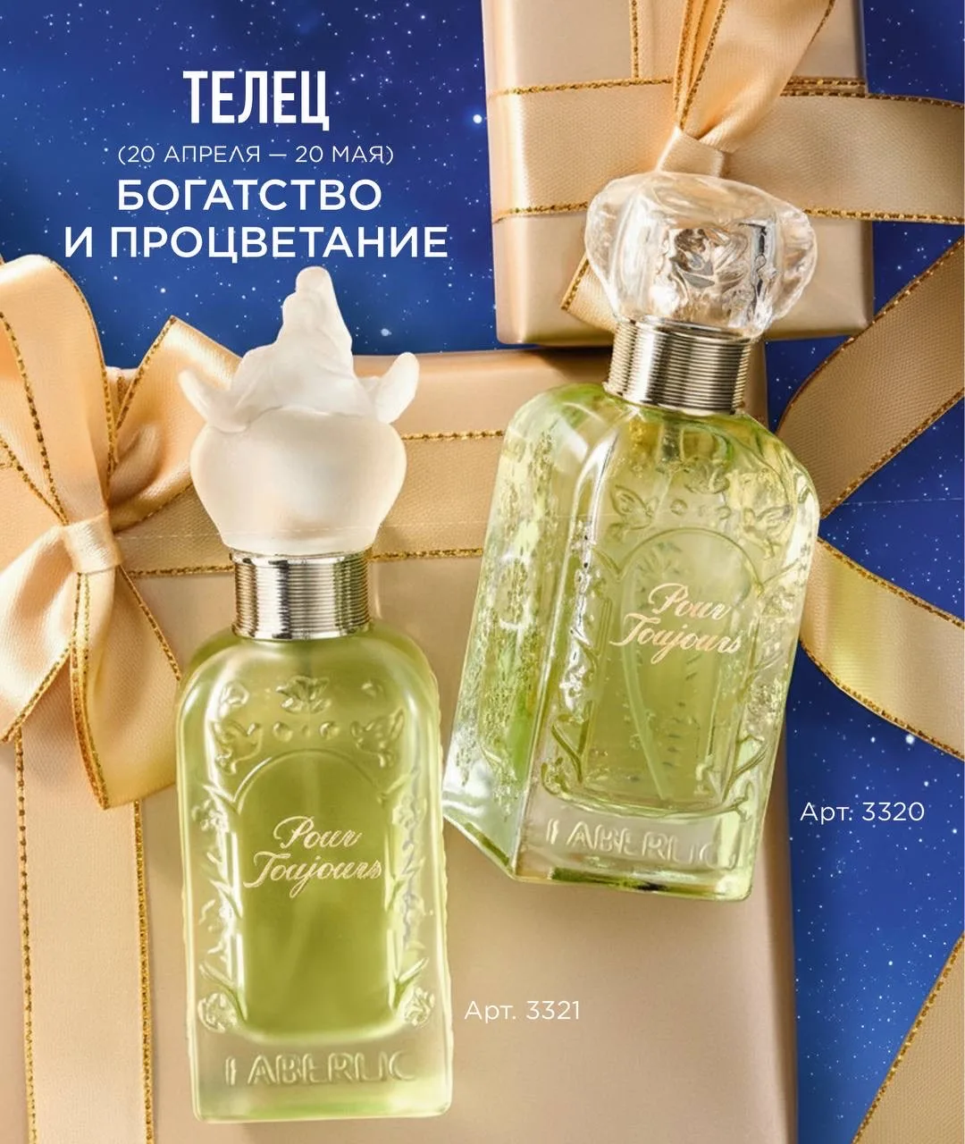 ♉️ Телец (20 апреля – 20 мая) — духи (арт. 3321) и парфюмерная вода Pour Toujours (арт. 3320) — роскошный, стойкий парфюм в изящном флаконе, символ безупречного вкуса и статуса.