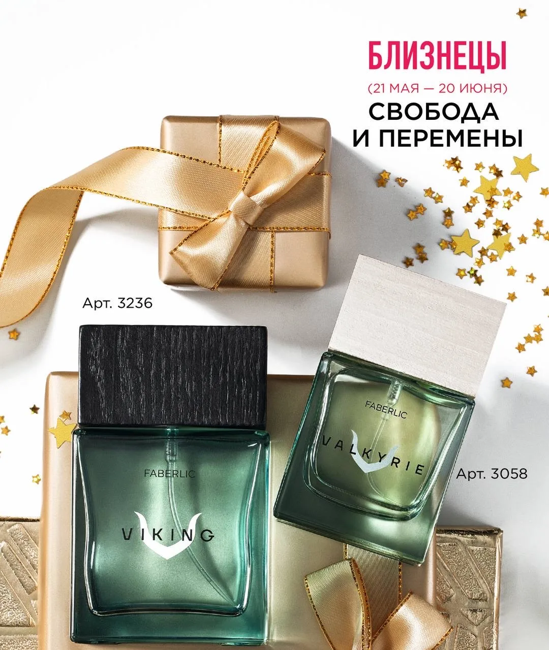 ♊️ Близнецы (21 мая – 20 июня) — парфюмерная вода для мужчин Viking (арт. 3236) и для женщин Valkyrie (арт. 3058) — энергичные ароматы для тех, кто любит быть в центре событий.