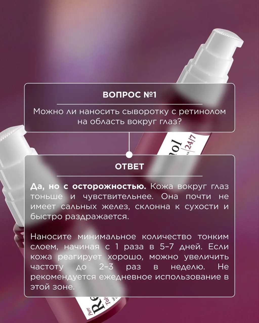 - Разглаживающий крем для век Retinol 24/7 — устраняет мимические морщины и заломы, уменьшает тёмные круги и отёчность и подтягивает нежную кожу вокруг глаз.
