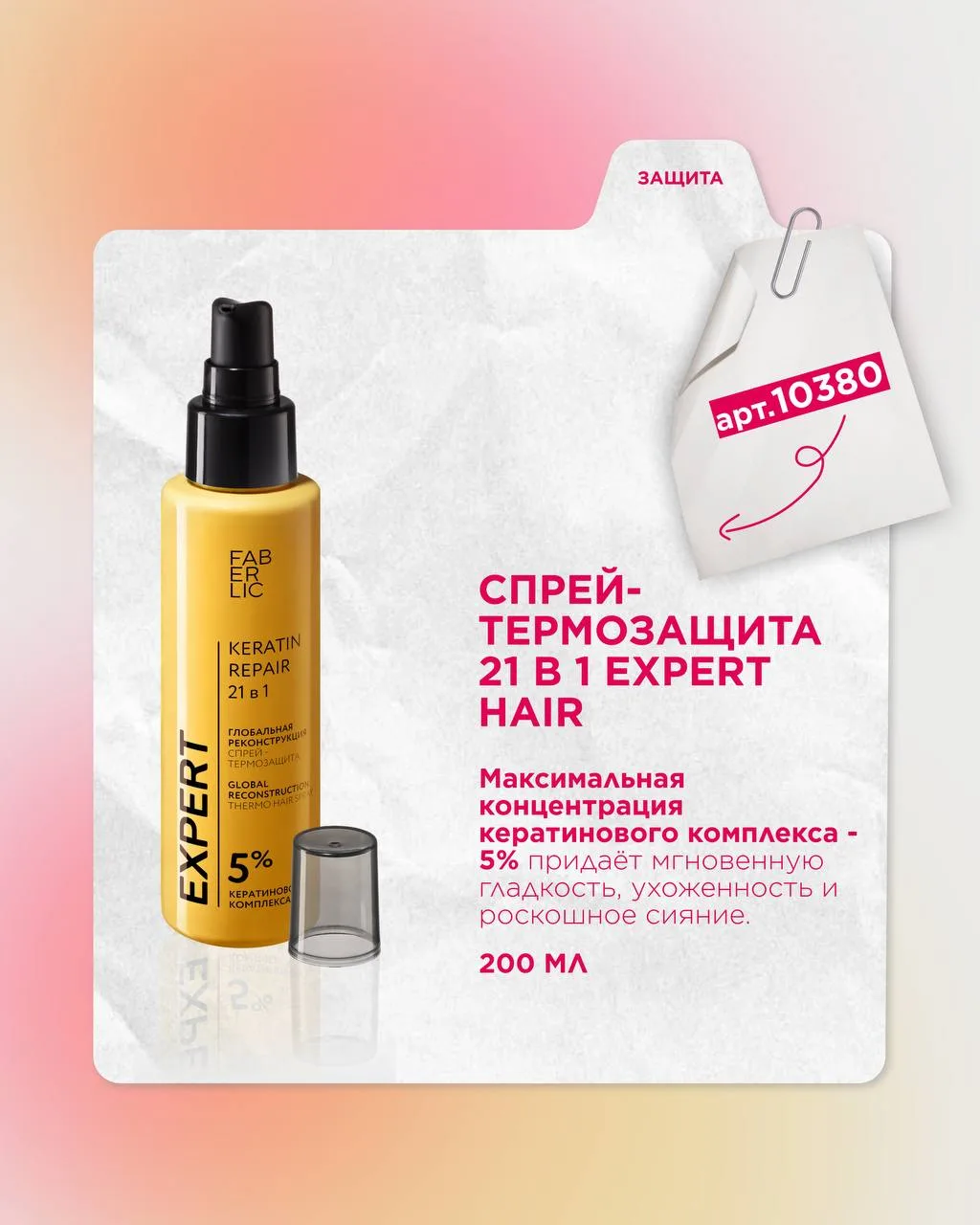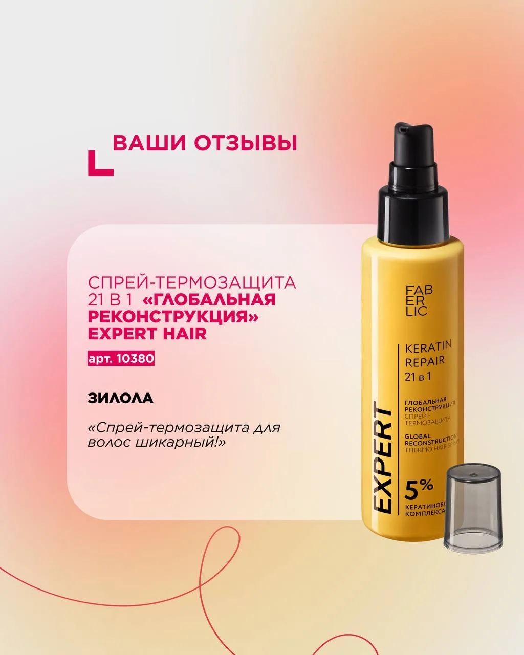 ✅ Спрей-термозащита 21 в 1 (арт. 10380) — возвращает прочность и уменьшает ломкость волос.