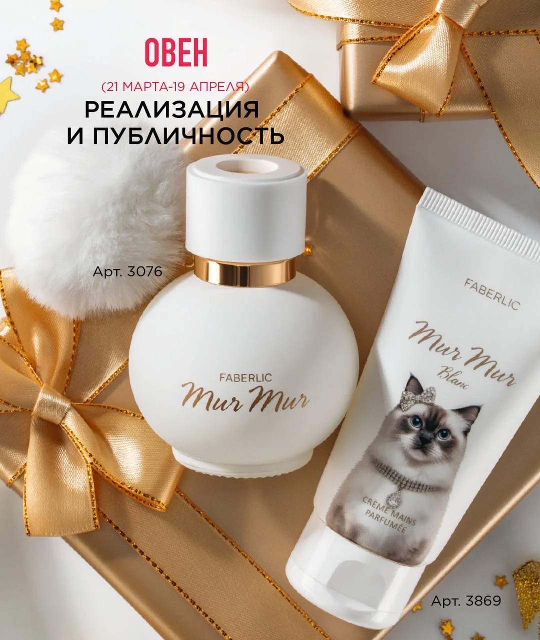 ♈️ Овен (21 марта – 19 апреля) — парфюмированный крем для рук (арт. 3869) и парфюмерная вода Mur Mur Blanc (арт. 3076) — для блестящего яркого образа на любую вечеринку.