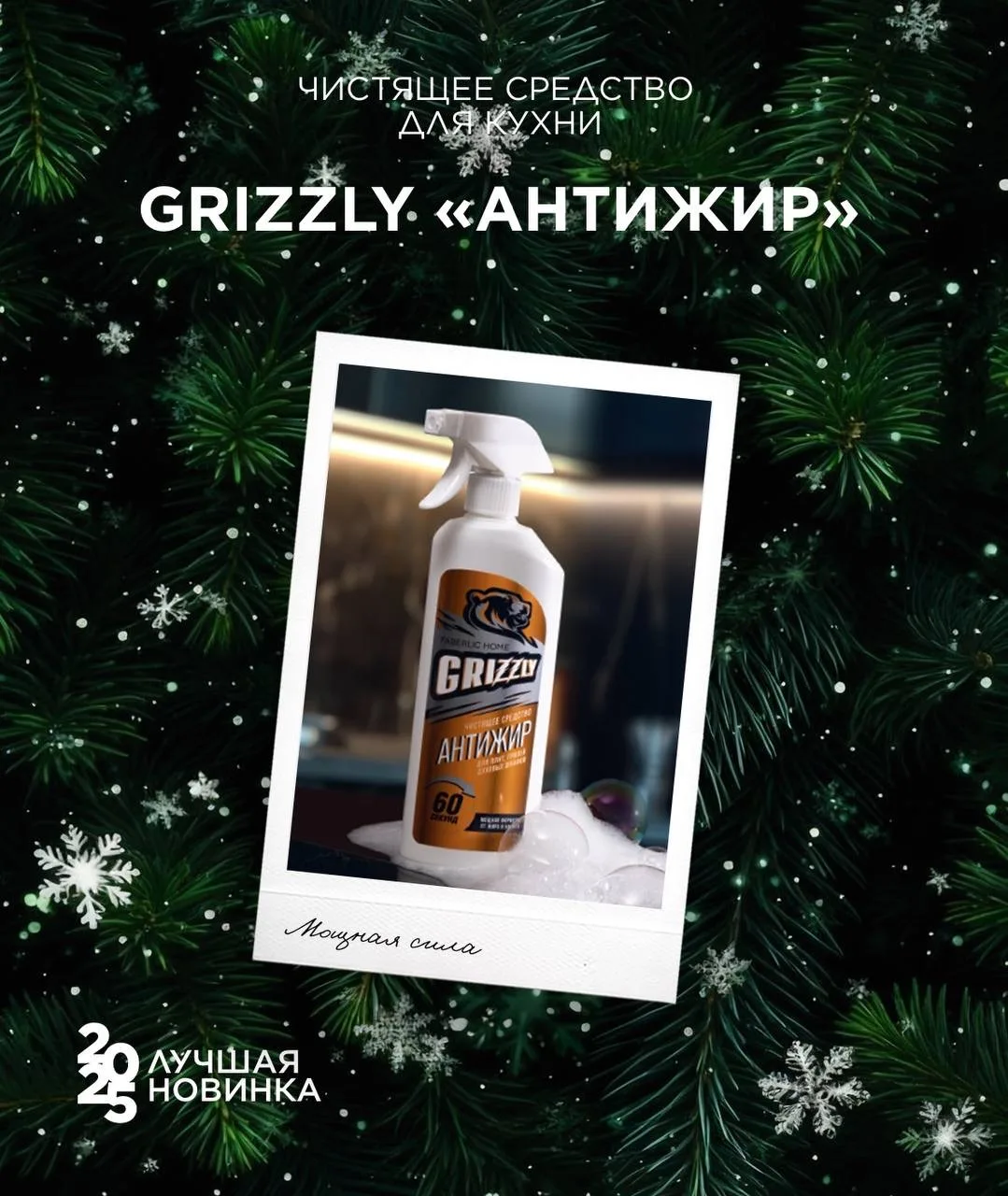 — Чистящее средство для кухни Grizzly «Антижир». Непобедимый борец с жиром и нагаром! Мощная формула и удобство использования сделали Grizzly настоящим королём на ваших кухнях.