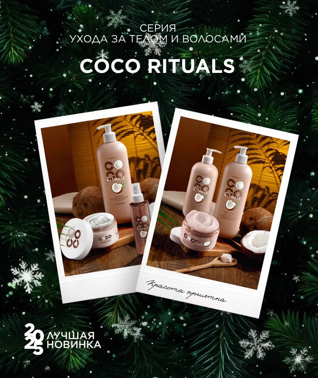 — Серия ухода за телом и волосами Coco RIituals. Погружение в тропический рай! Нежные текстуры и кокосовый аромат покорили сердца тех, кто ценит наслаждение в каждой детали ухода.