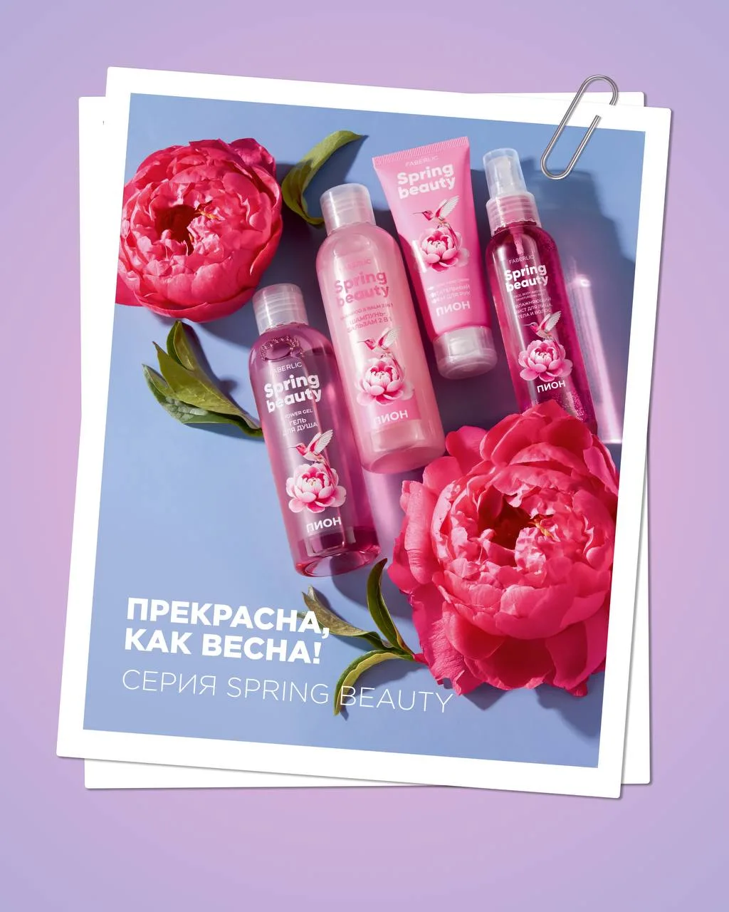 - Серия Spring Beauty — нежные цветочные ароматы пиона, камелии, сирени и вишни — как весенний сад в подарок.