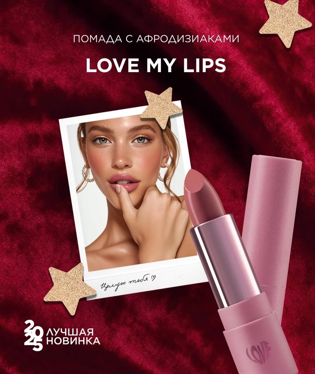 — Помада с афродизиаками Love My Lips. Не просто помада, а настоящее оружие обаяния! Объединила насыщенный цвет, уход и волнующий аромат.