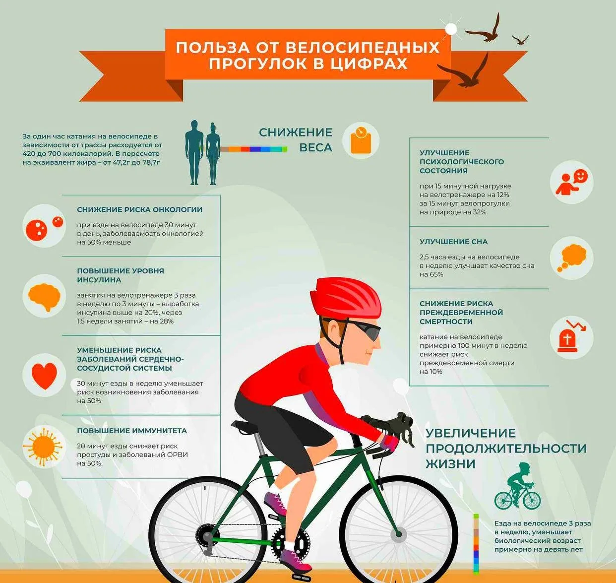 Польза от велосипедных прогулок в цифрах.