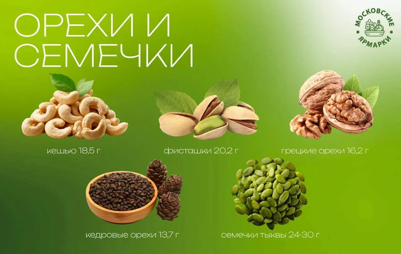 🥜 На московских ярмарках можно найти чечевицу, фасоль, горох, крупы, грибы, орехи и семечки — источники растительного белка.