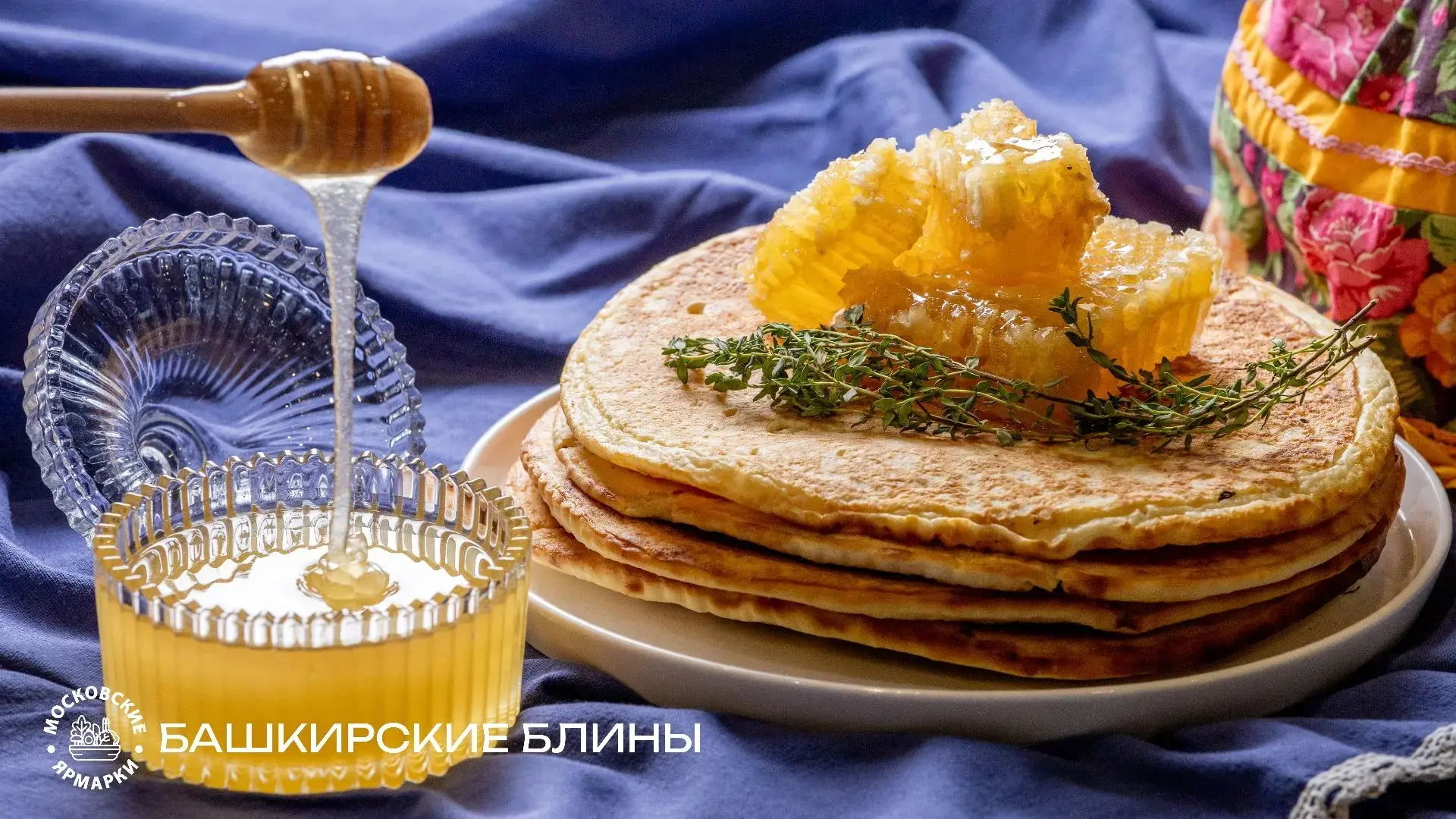 • Башкирские — небольшие блины на сметане, сразу после сковороды щедро смазанные топленым маслом, подаются с ароматным башкирским медом.