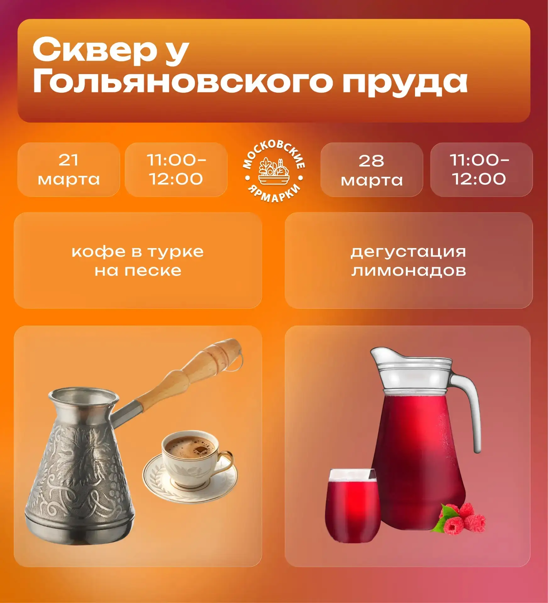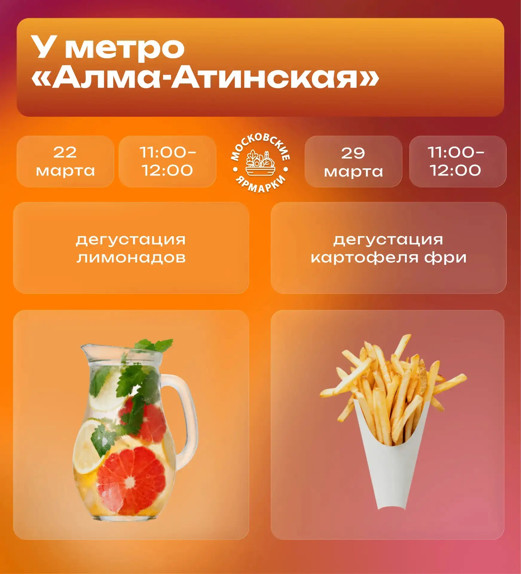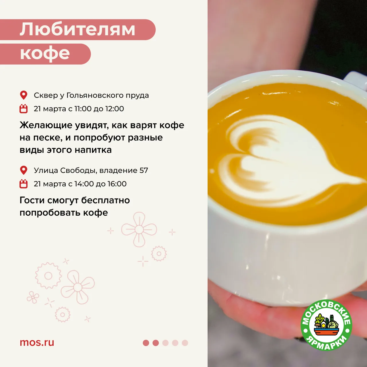 🍰 А в кафе ярмарок у метро Алма-Атинская и у Гольяновского пруда 8 марта будет действовать скидка 10% на всё меню.
