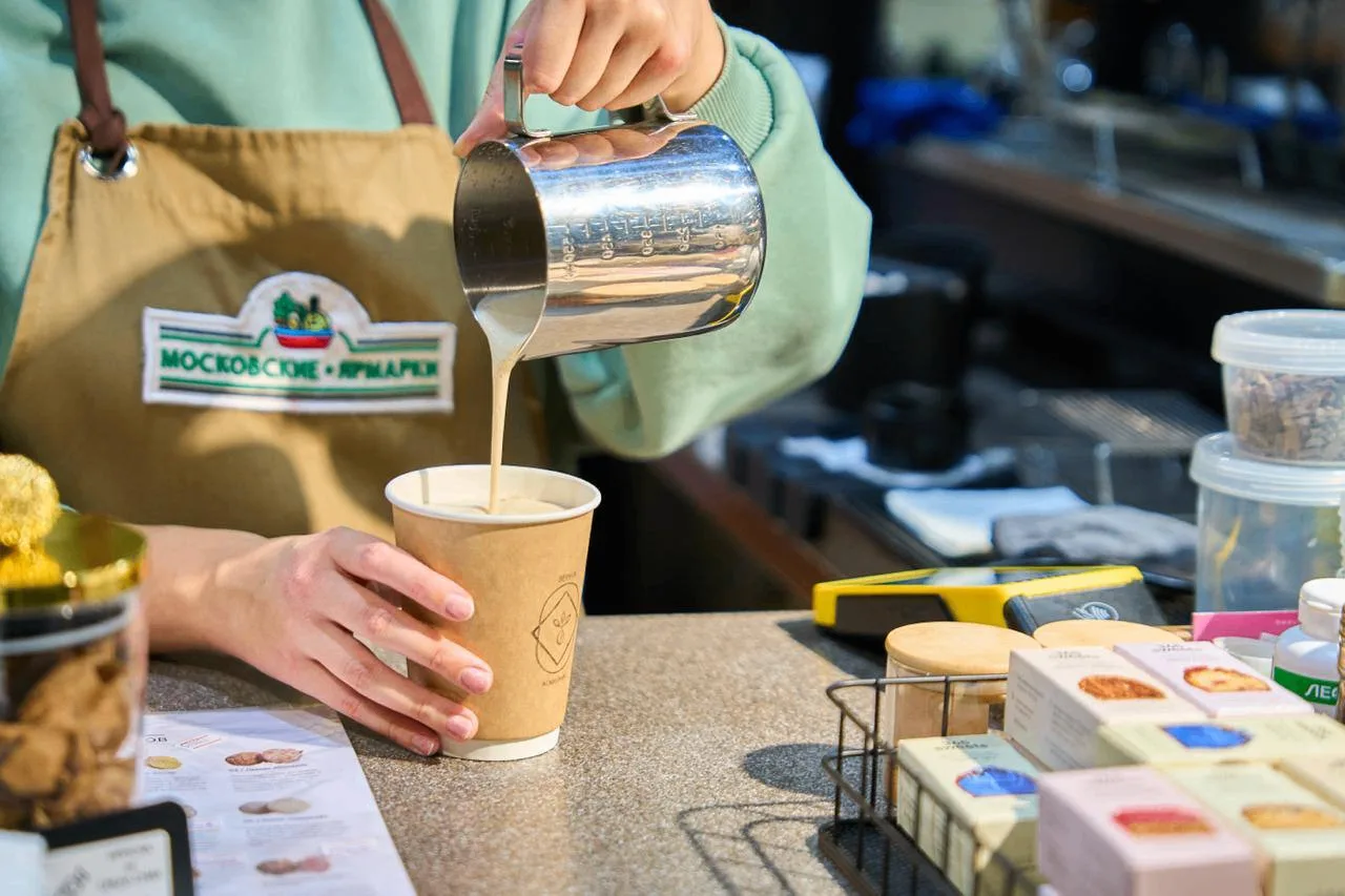 На ярмарке в Хорошёвском, по адресу проезд Берёзовой Рощи, владение 2 (напротив), работает кафе, где всегда пахнет свежемолотым кофе и сливочной карамелью.