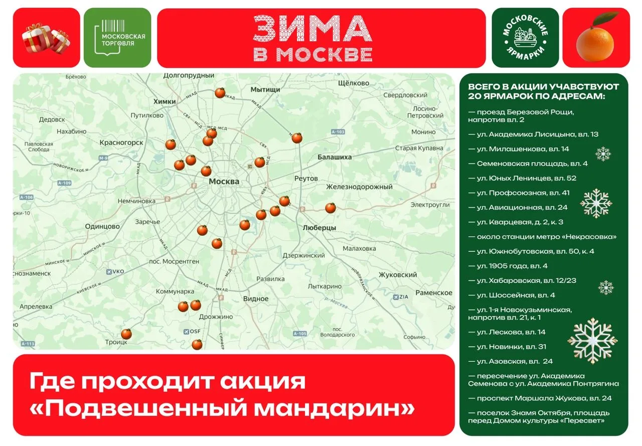 🍊 На московских ярмарках стартовала акция «Подвешенный мандарин»