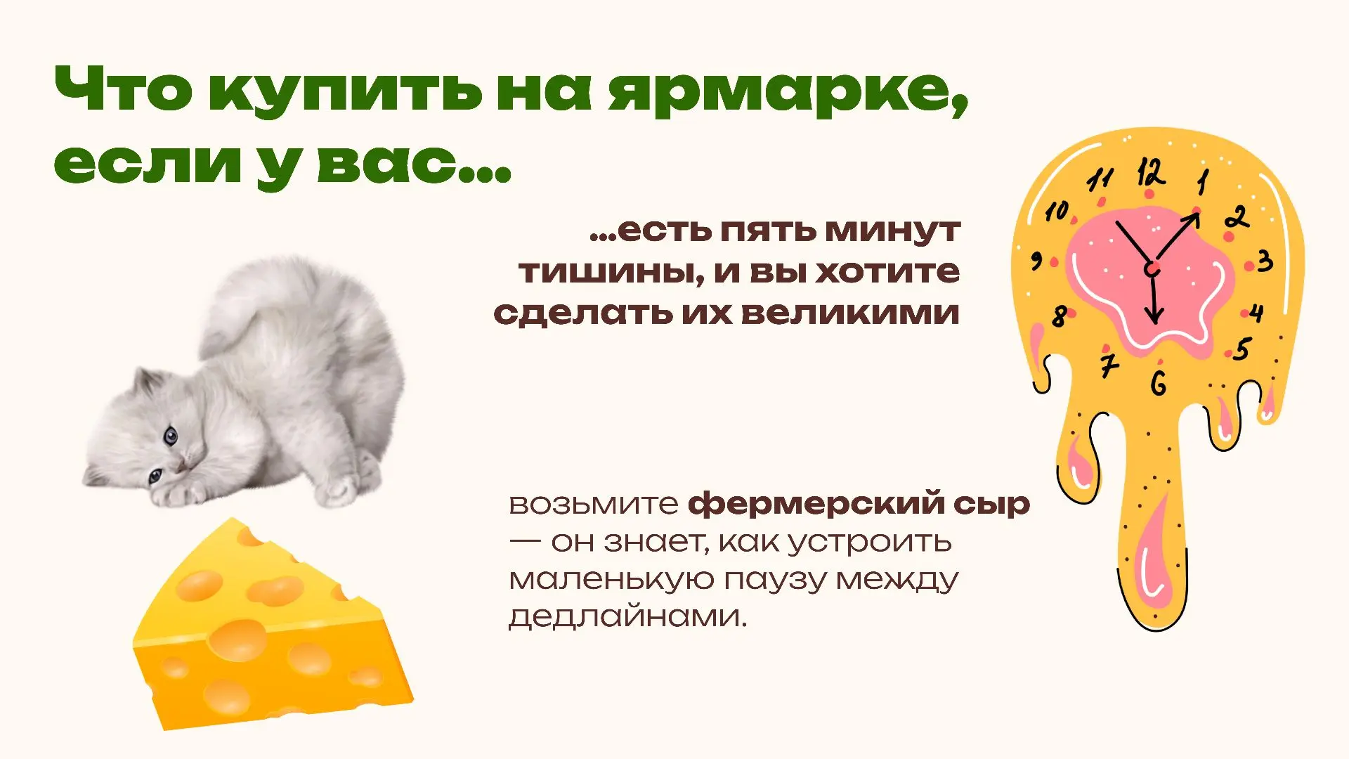 🧀 На ярмарке на Рублёвском шоссе — герой сюжета: Орацио Спаккавенто, итальянец, который 16 лет живёт в России и варит сыр по самым традиционным рецептам. Молоко — с ферм Тверской, Ярославской и Калужской областей, технологии — итальянские, результат — «вслепую отличить сможет редкий итальянец», говорит Орацио.