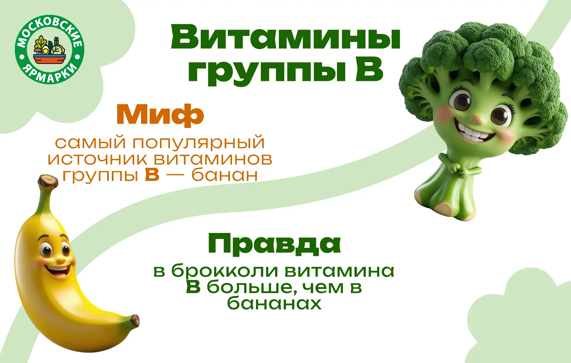 брокколи уверенно тянет руку за всеми витаминами группы B